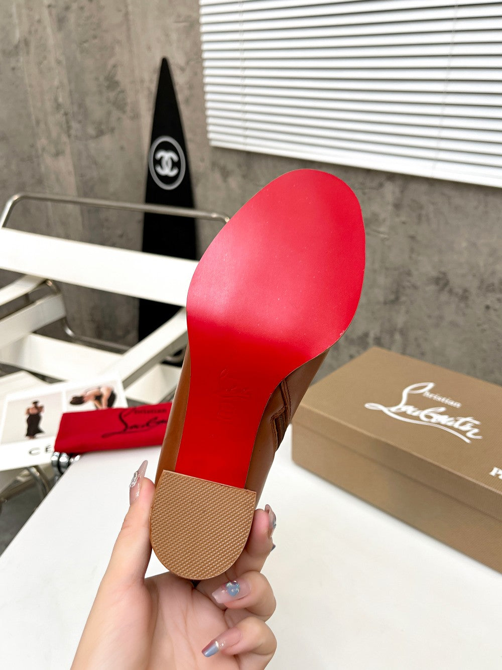 CL Turn-Lock Buckle Red Sole Booties Brown Calfskin 521439