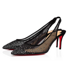 CL Follies Strass Sling Pumps 70mm Fishnet Black