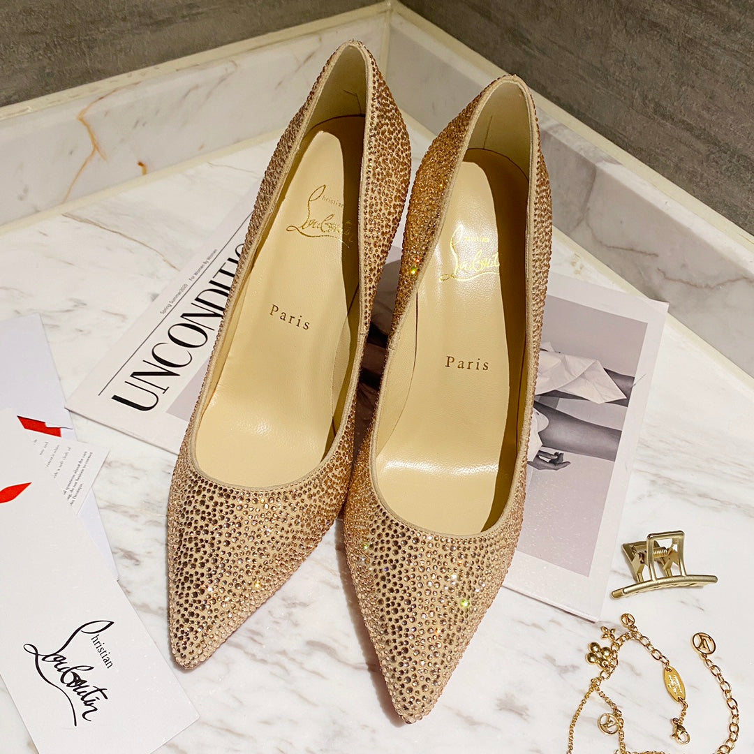 CL Kate Strass Degrade Pumps 100mm Suede Beige