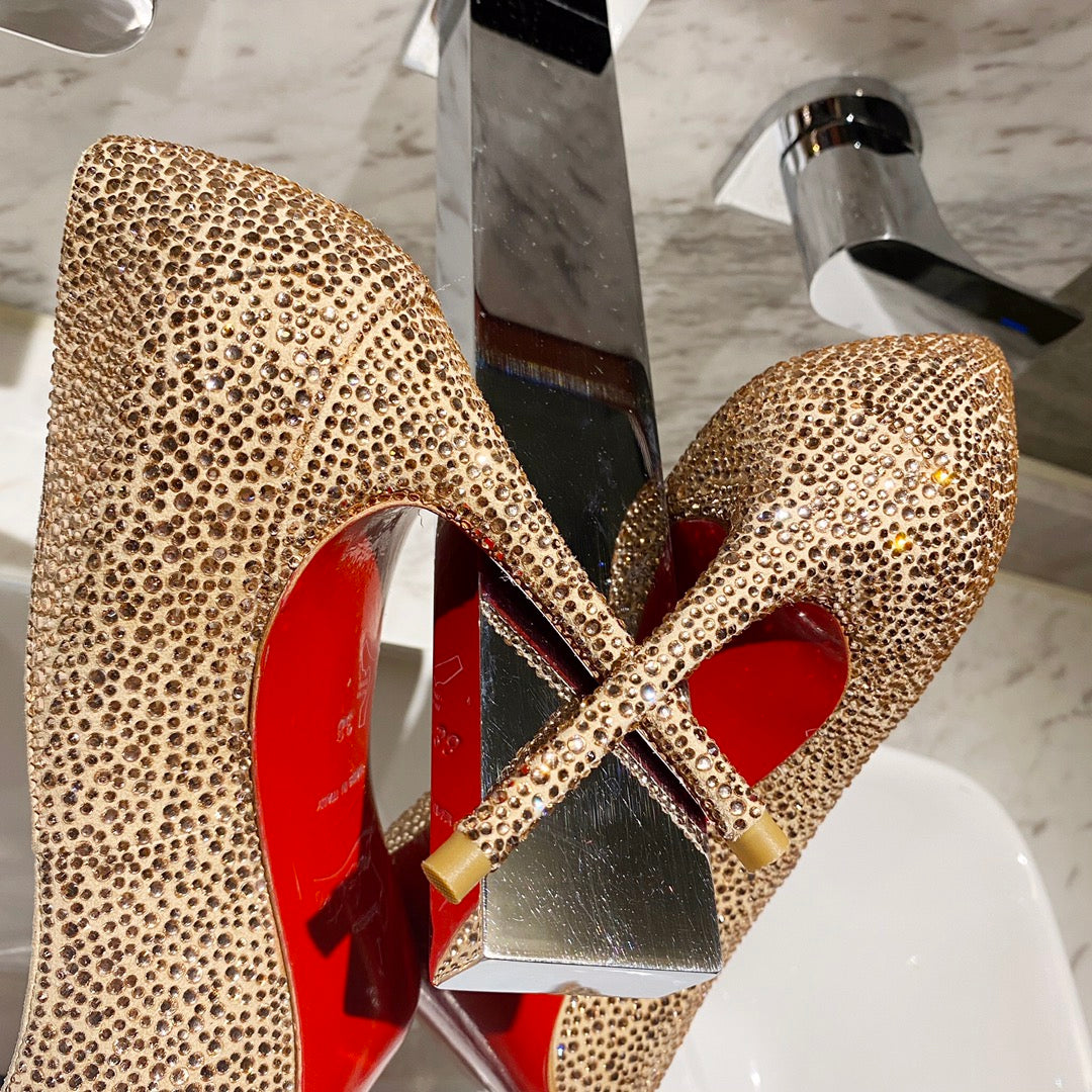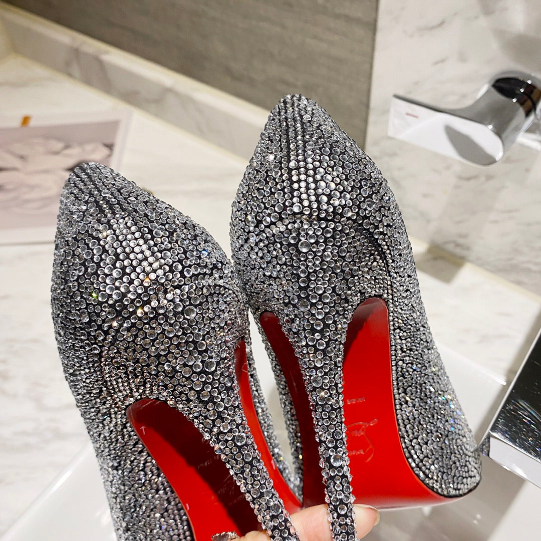 CL Marykate Queen 100MM Pumps Crystal-Embellished Glitter Silver