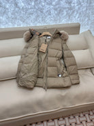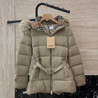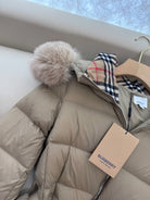 Burberry 25 Fur Collar Plaid Slim-fit Beige Jacket Polyester Down