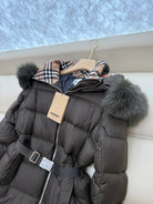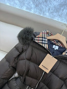 Burberry 25 Fur Collar Plaid Slim-fit Khaki Jacket Polyester Down