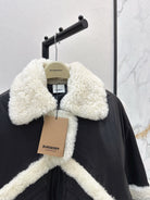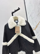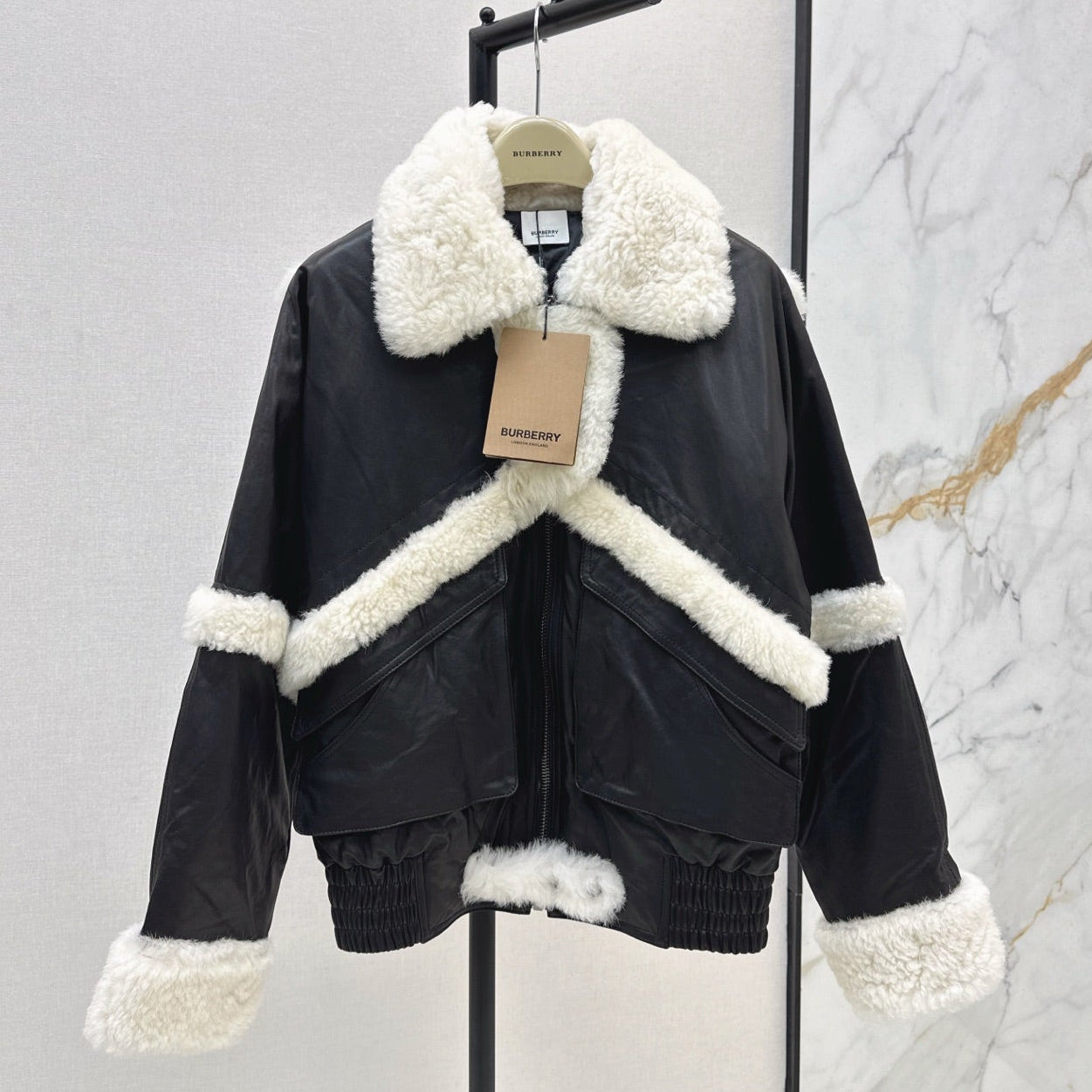 Burberry 25 Shearling-trimmed Bomber Jacket Black White Fur Leather