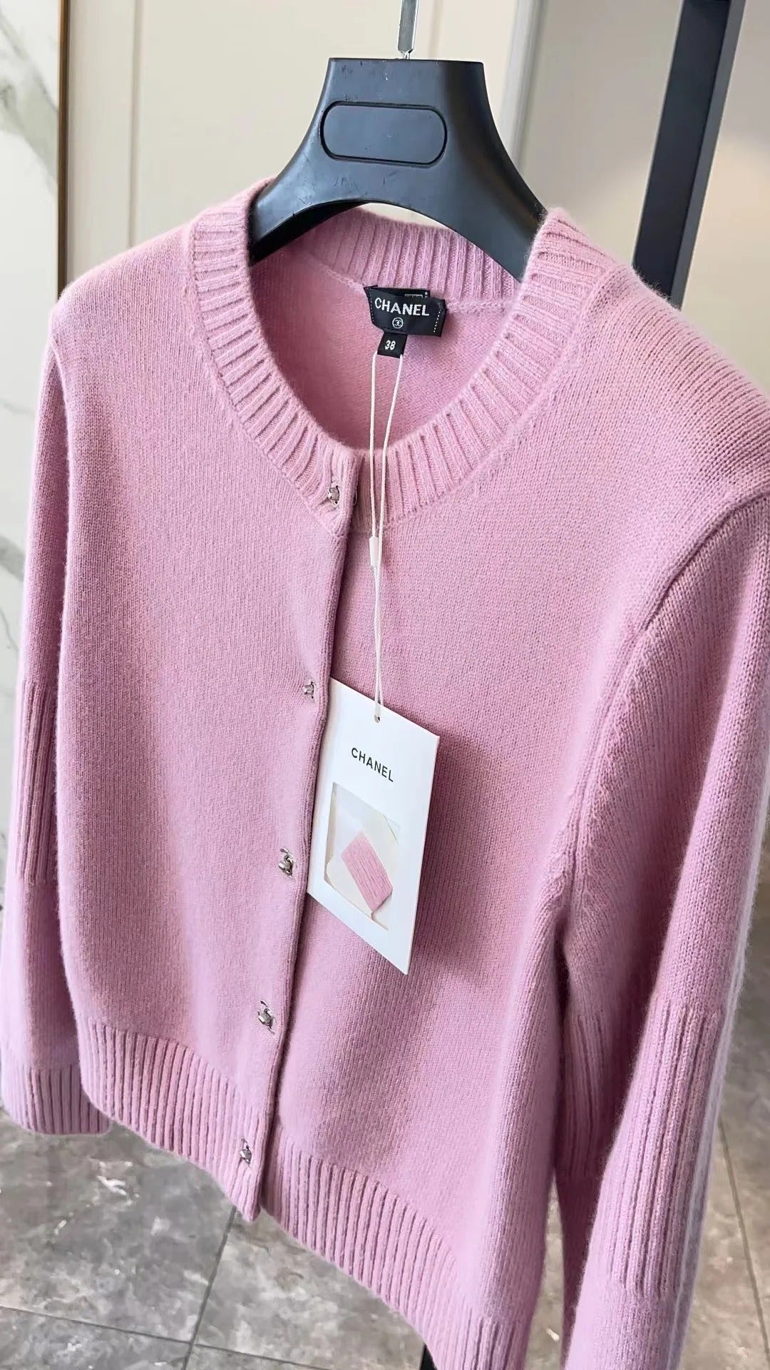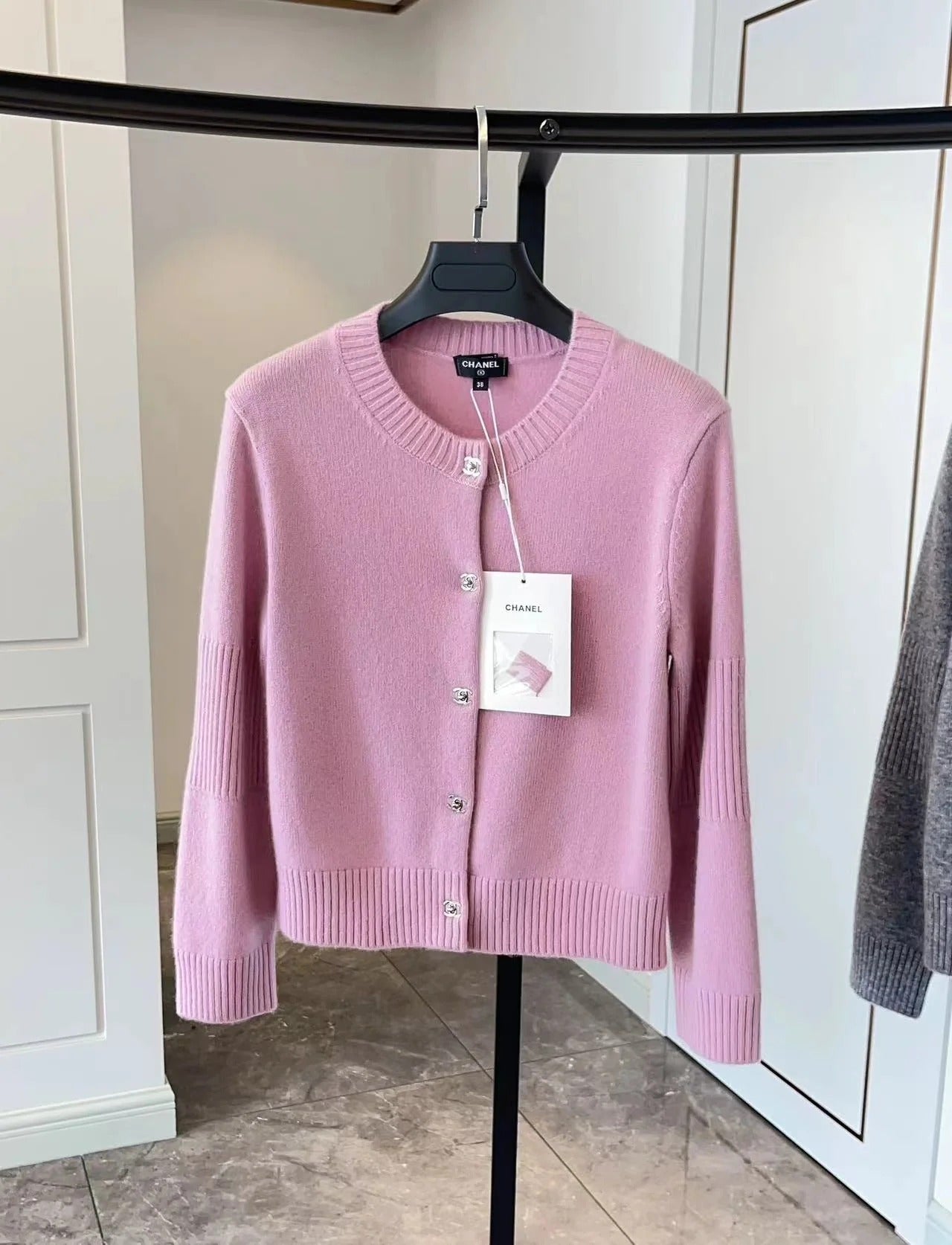 CC CRYSTAL BUTTON PINK CARDIGAN