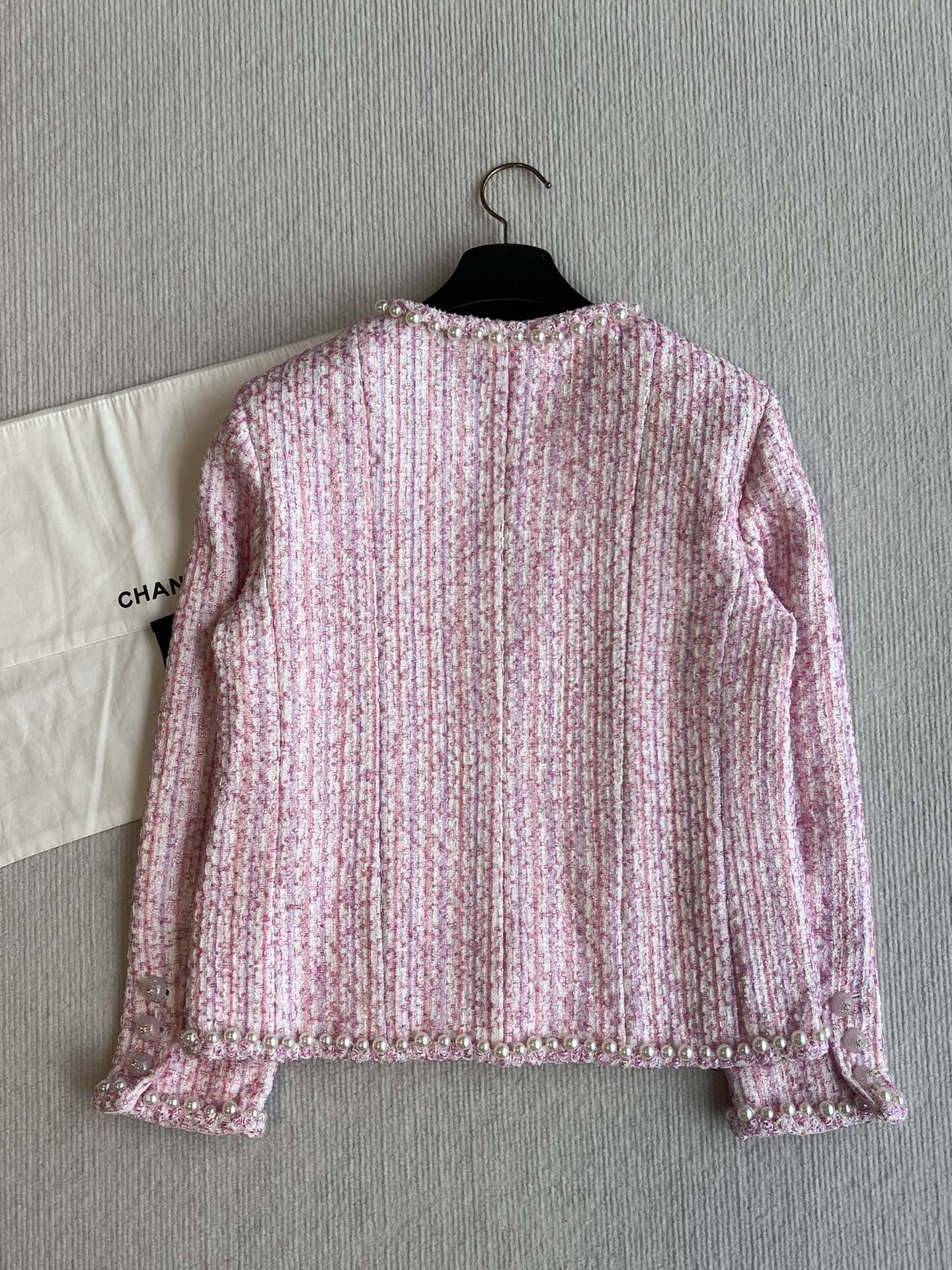 Chanel 25P Cardigan Pink Tweed With Pearl 235893