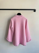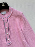 Chanel 25P Long-Sleeve Top Pink Tweed Pearl Buttons