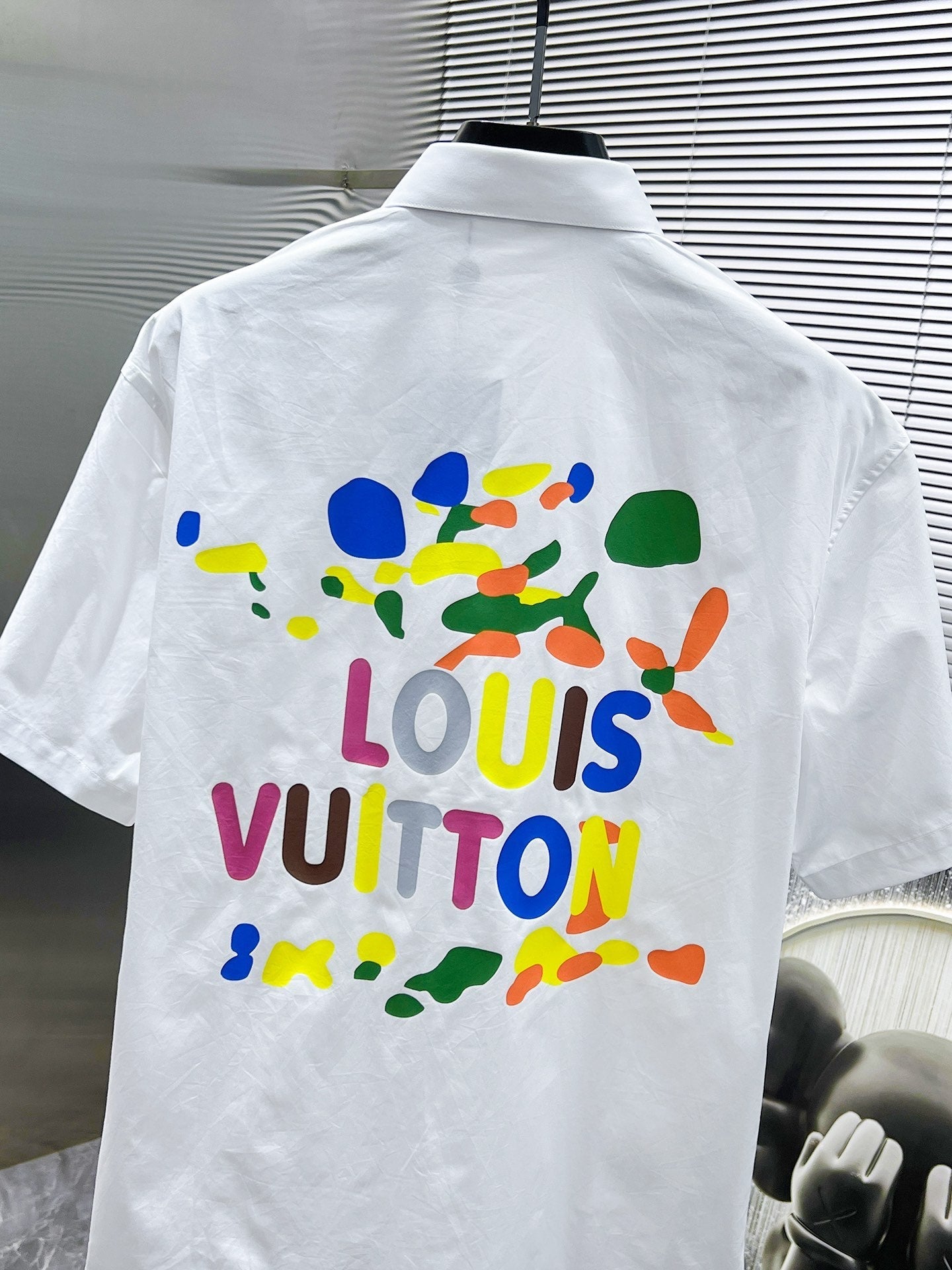 LV SHORT-SLEEVED SHIRT IN WHITE COTTON COLORFUL LOGO 238812