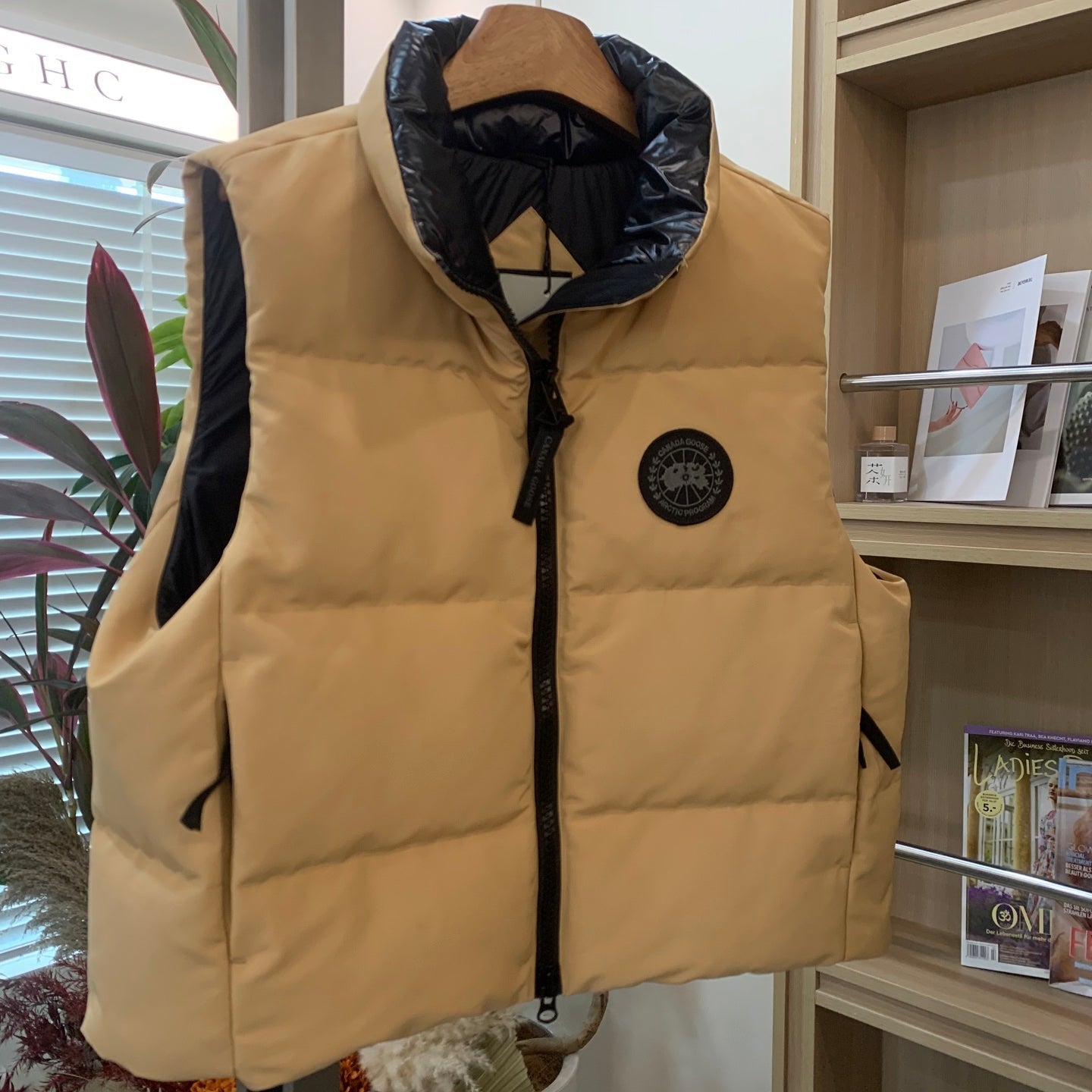 C. Goose Hooded Down Vest Beige Polyester 0004
