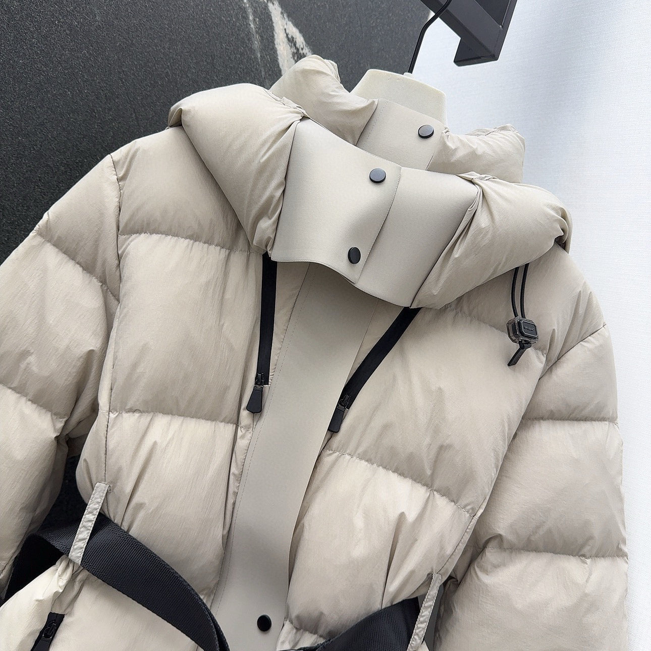 Burberry 25 Hooded Short Down Jacket with Adjustable Waist White Polyester