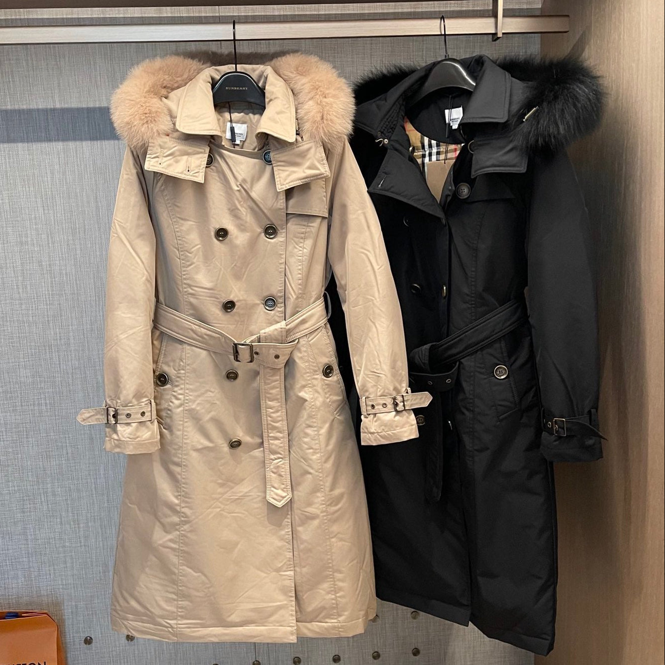 Burberry 25 Fur Collar Plaid Slim-fit Khaki Jacket Polyester Down