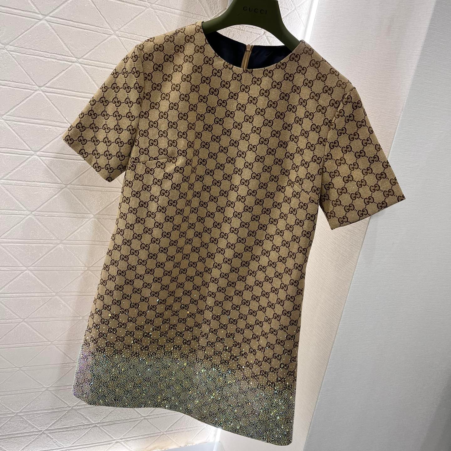 GG Beige Monogram Crystal Embellished Mini Skirt