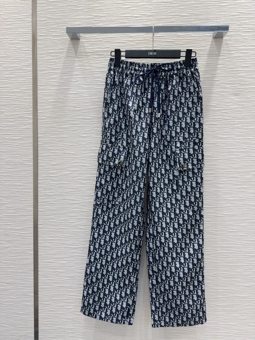 CD 2025 Monogram Straight Trouser Blue Grey Polyester