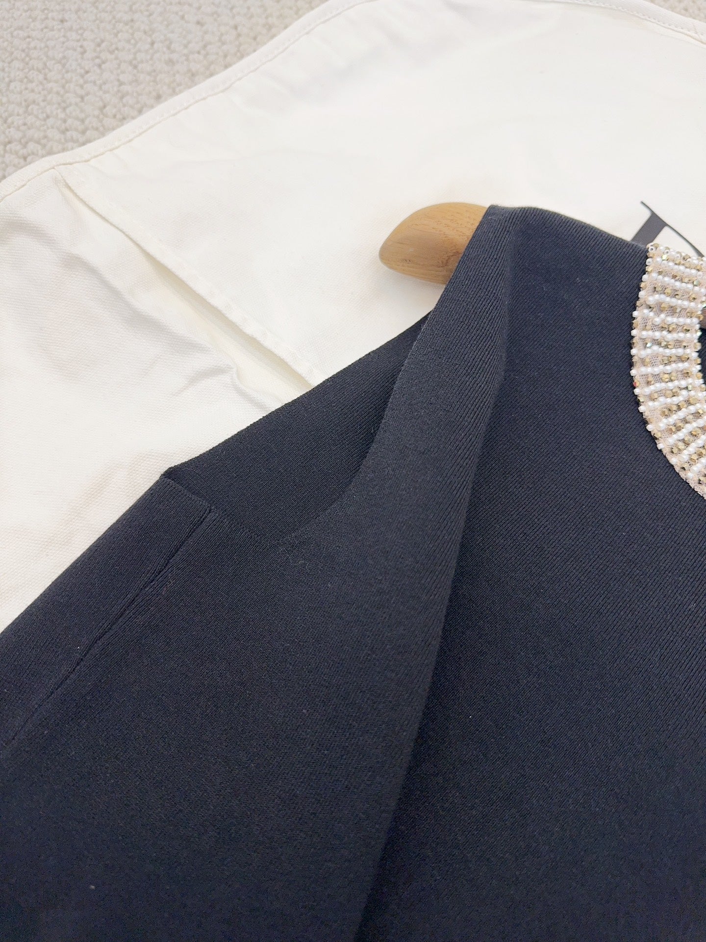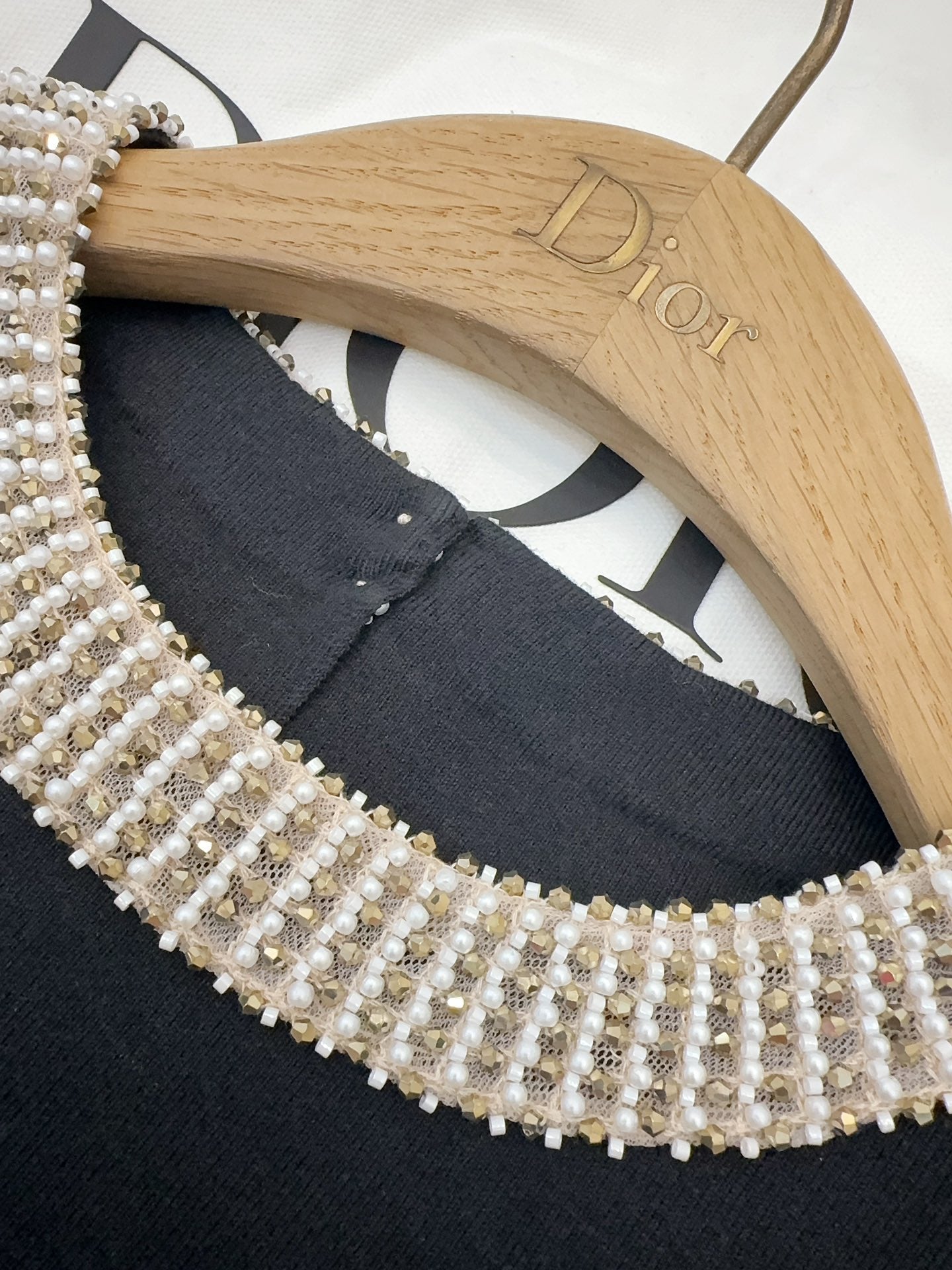 CD 25 Beaded Knitted Dress Blue Tencel Cotton and Silk