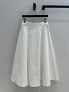 CD 25 Belted Single-breasted Long Skirt White Cotton