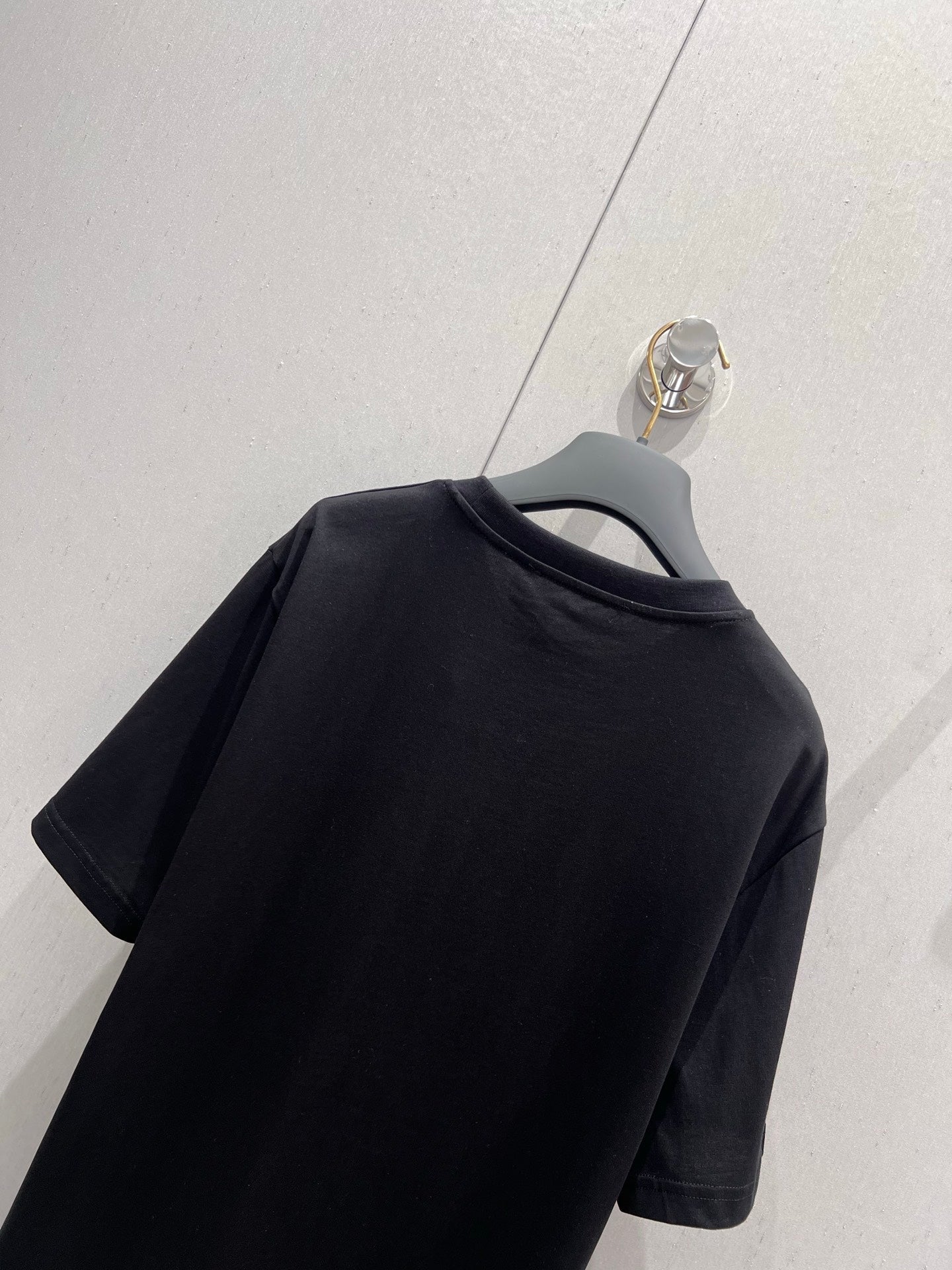 CD 25 Embroidered Grass Cat Short Sleeve Black cotton 217452