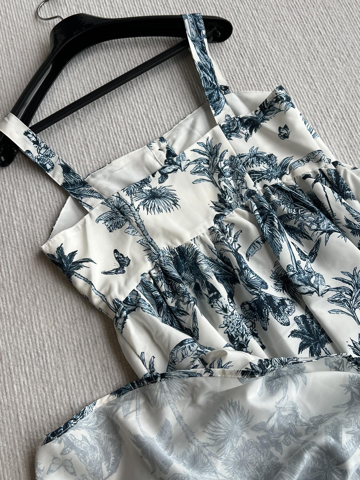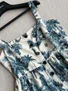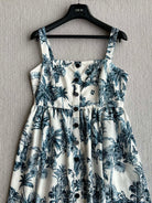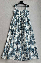 CD 25 Pattern Printed Suspender Dress White Blue Cotton Polyester