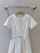 CD 25 Round Neck Raglan Sleeve Dress Beige Polyester
