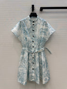 CD 25 Sauvage Jouy Print Button Dress Light Blue mix White Cotton