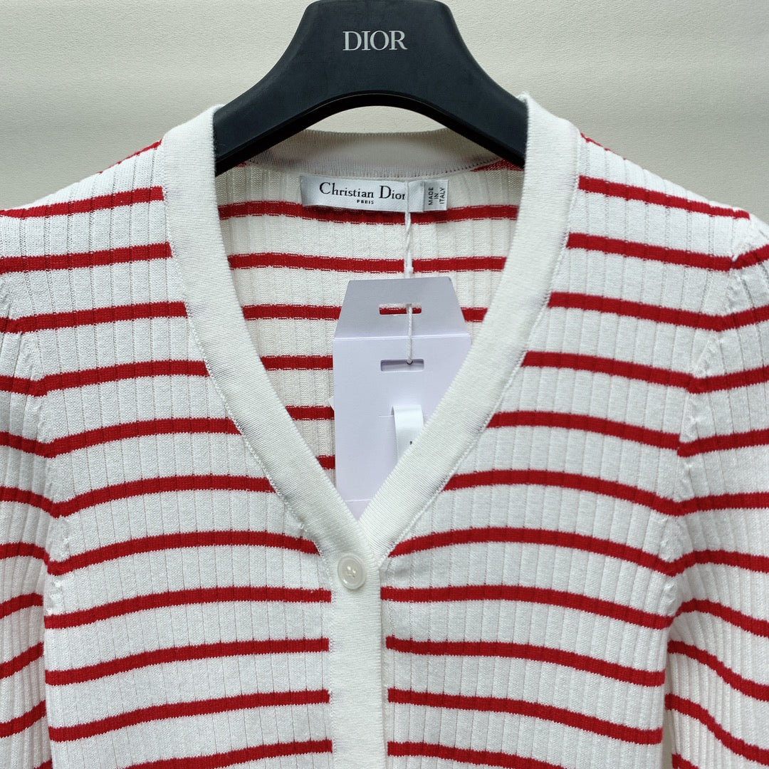 CD 25 Striped Cardigan Red White Wool 246753