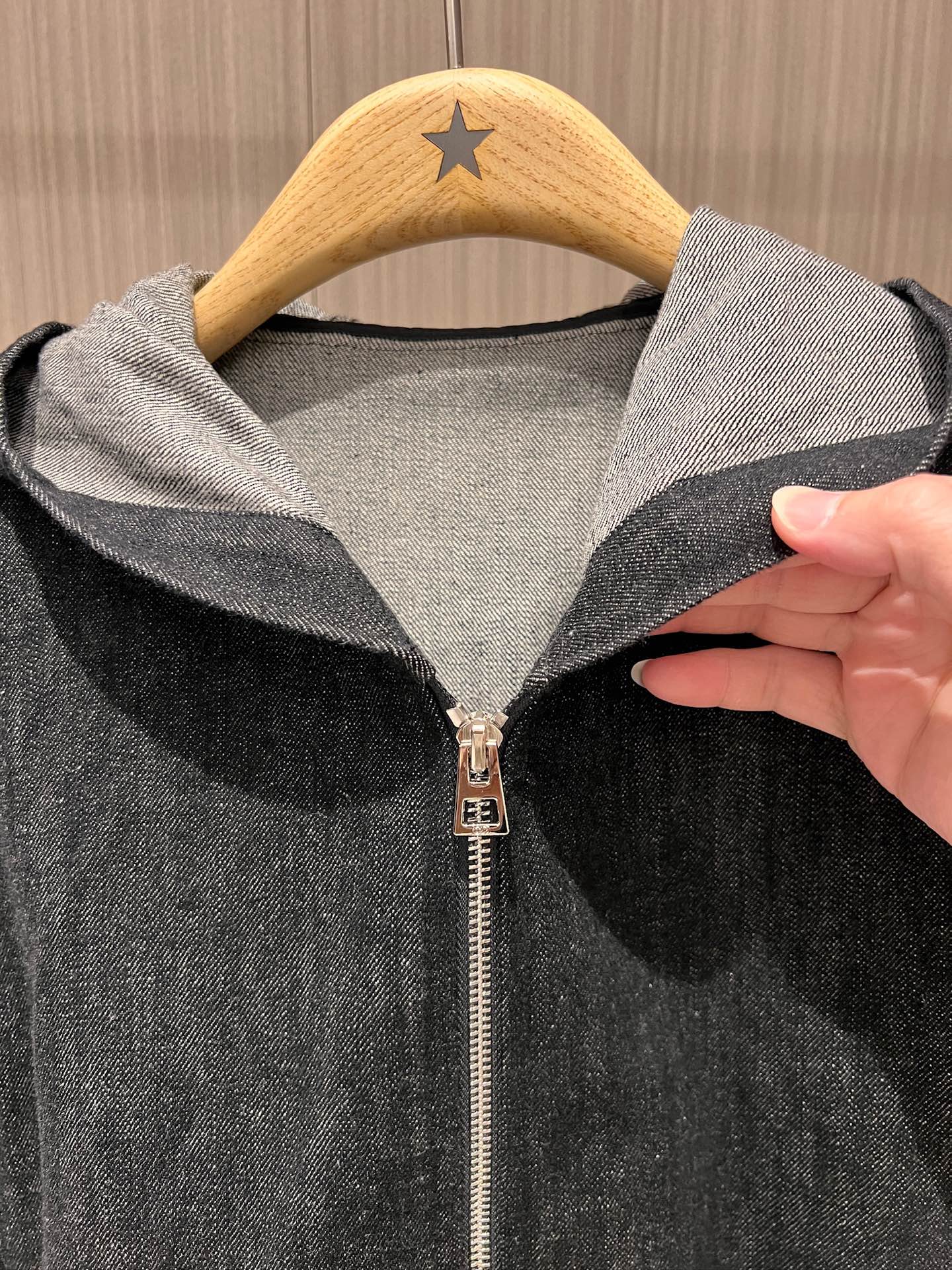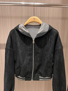CD Hooded Waistband Denim Jacket Black mix Gray Cotton