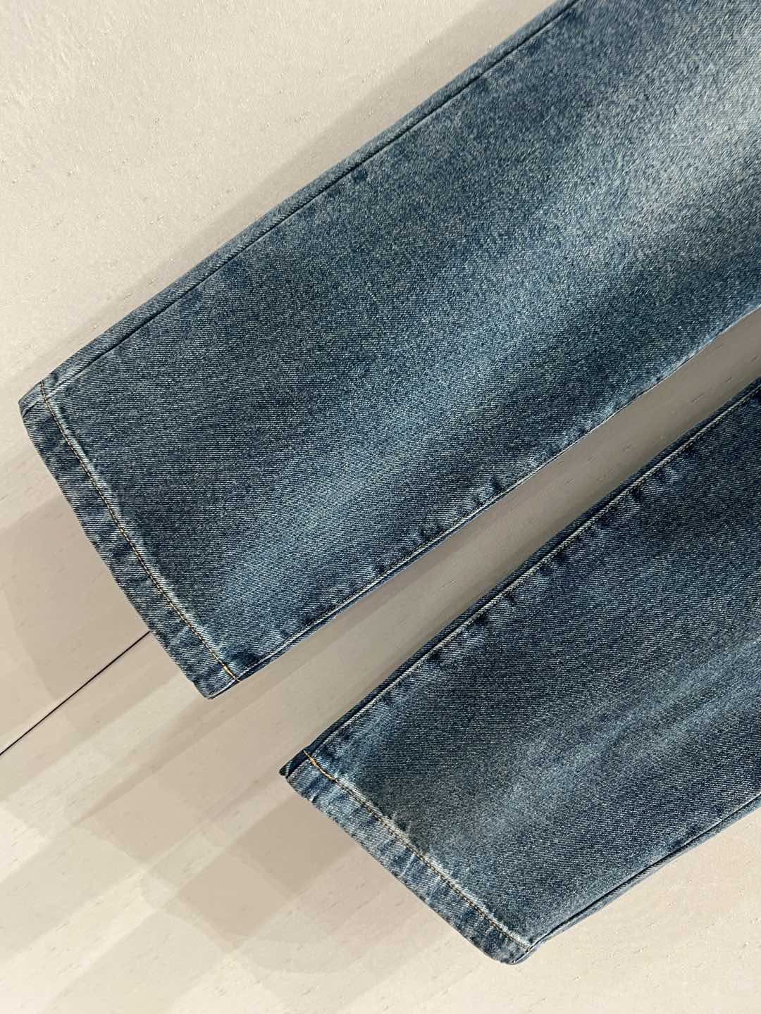Celine Back Pocket Embroidery Cover Straight Jeans Blue Cotton 209716