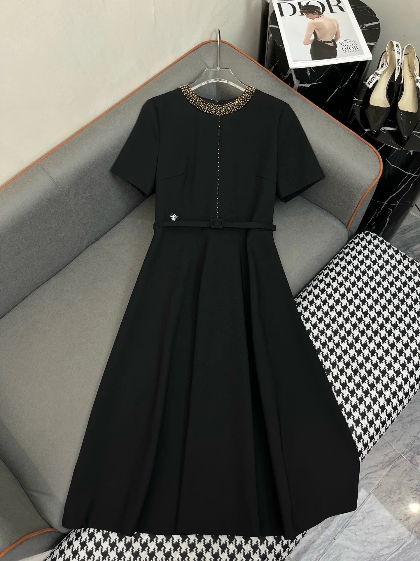 DIOR DRESS WITH BELT AND METAL-EMBELLISHED COLLAR 219281
