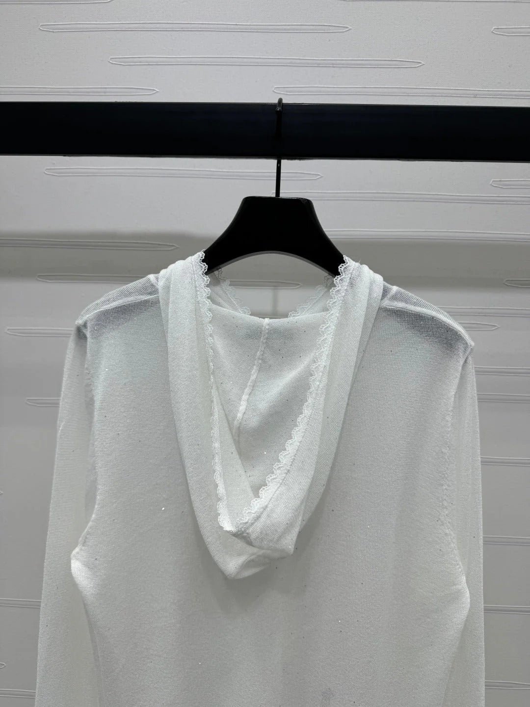 DIOR LACE-KNIT LONG-SLEEVE HOODIE WHITE 274970