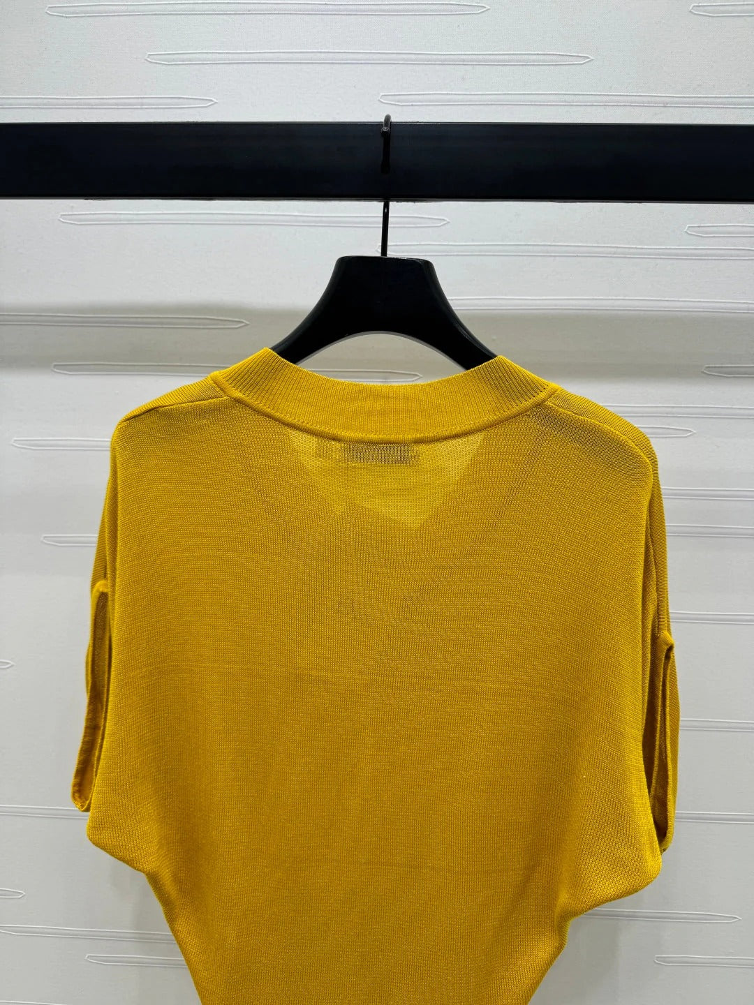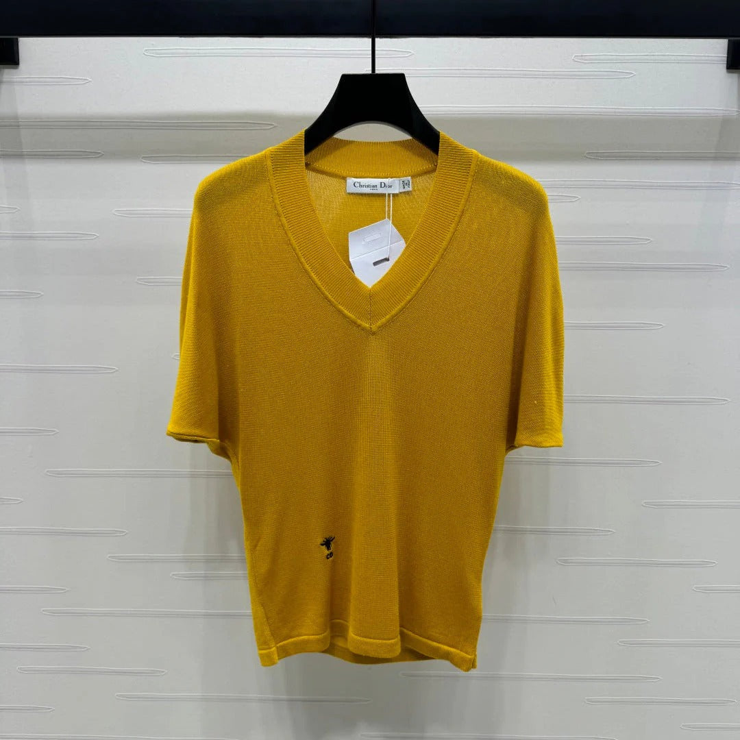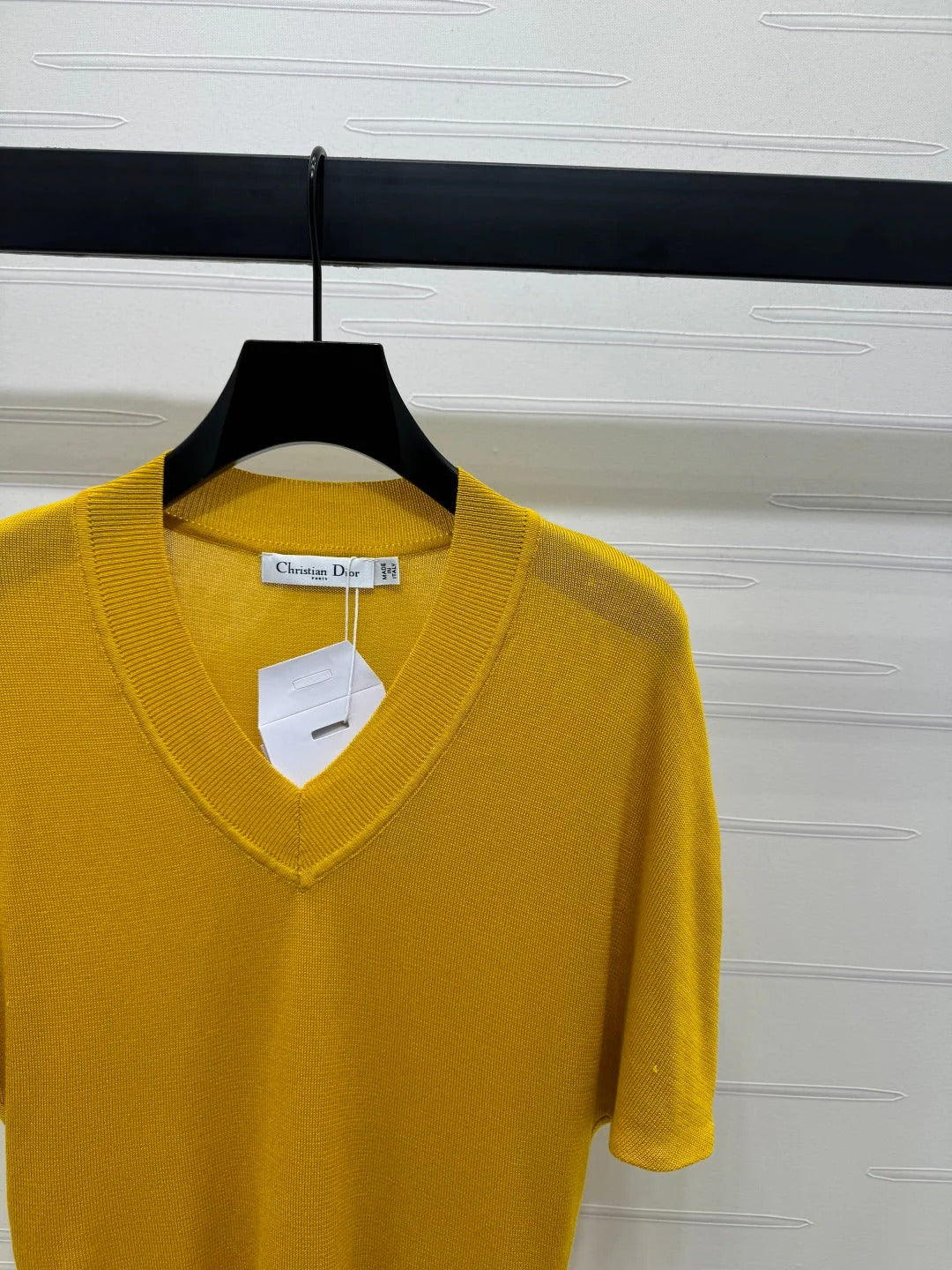 DIOR V-NECK KNITTED SHORT-SLEEVE T-SHIRT YELLOW 274935