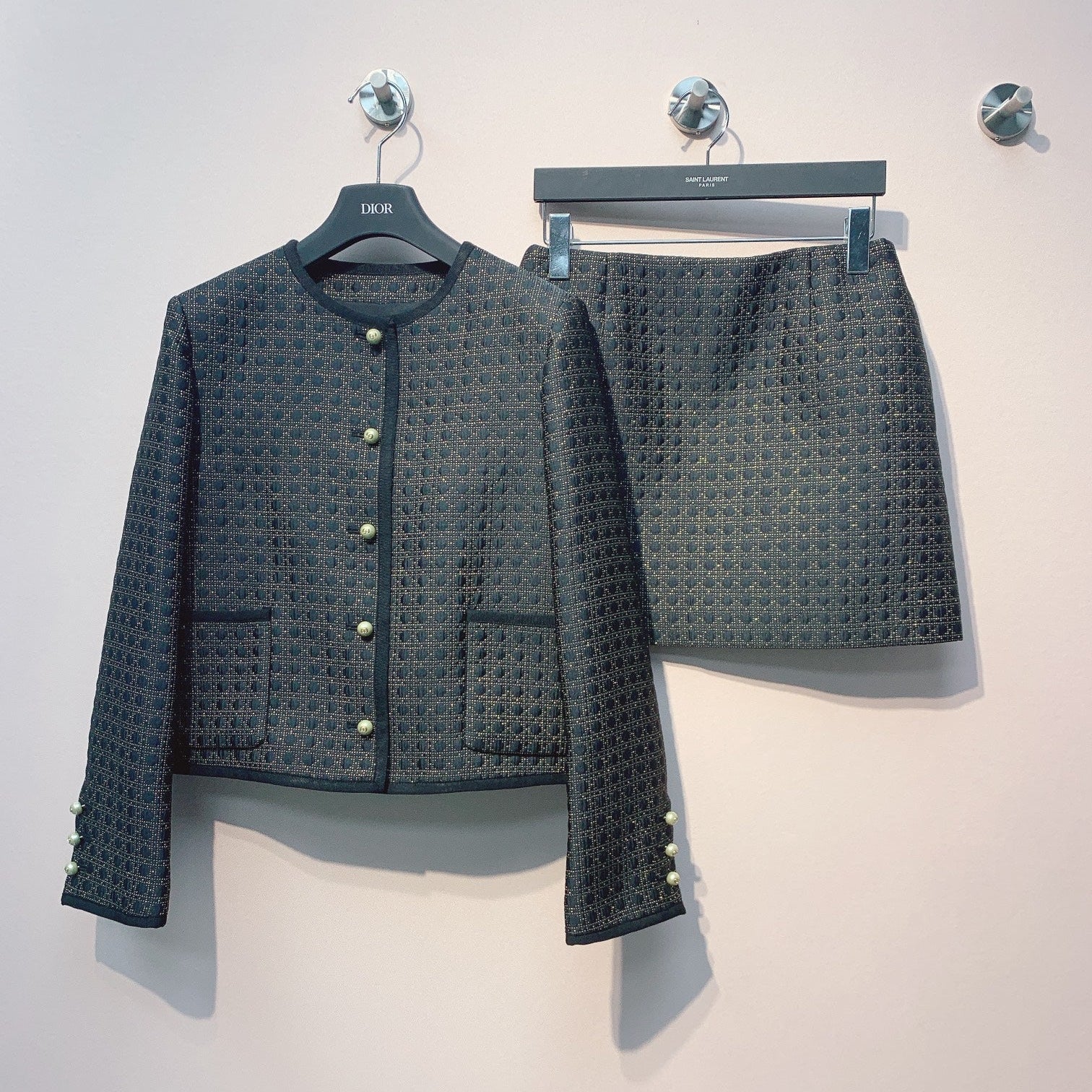 CD 25 Plaid Jacket Set Beige Mix Black 261589