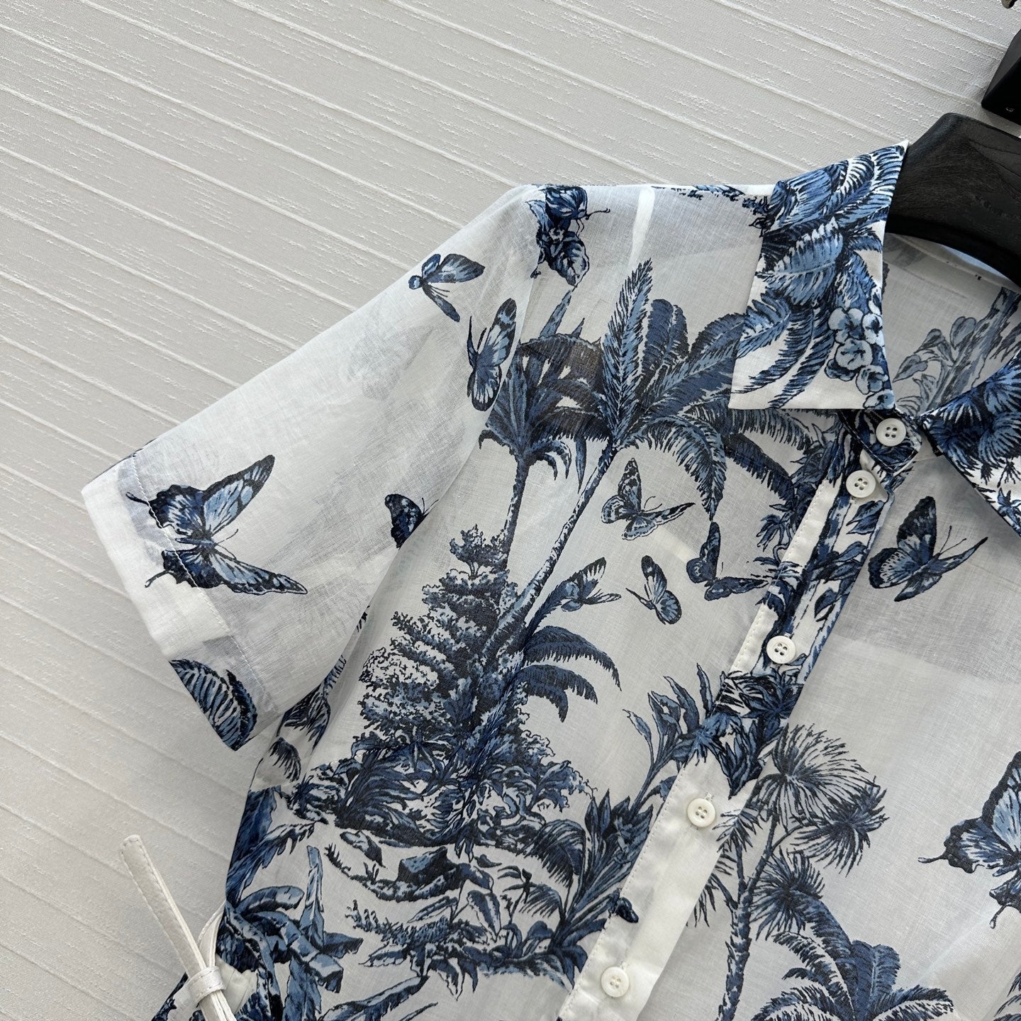 CD 25 Butterfly Coconut Print Shirt White Blue Cotton