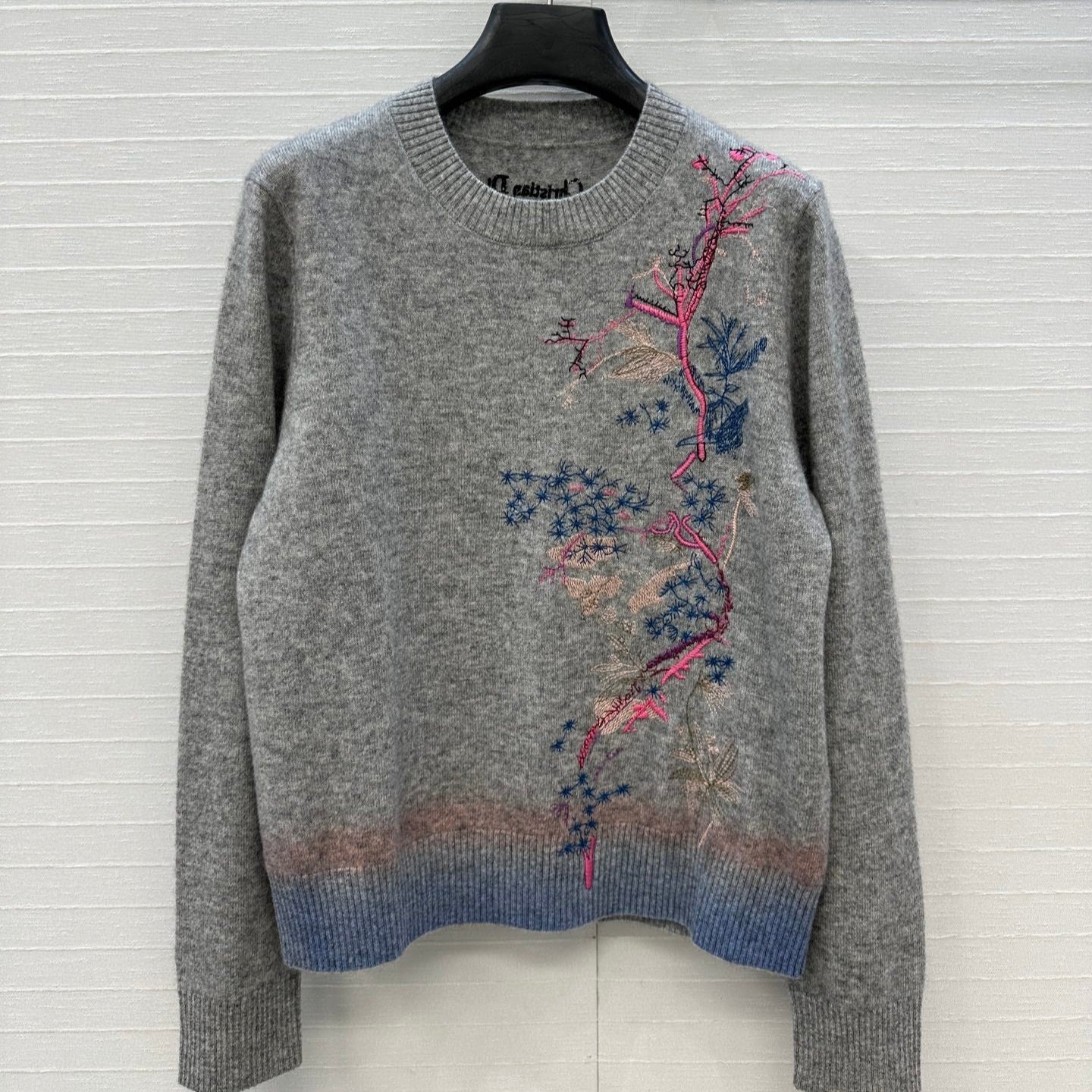 CD Embroidered Logo Sweater Beige Wool Cotton