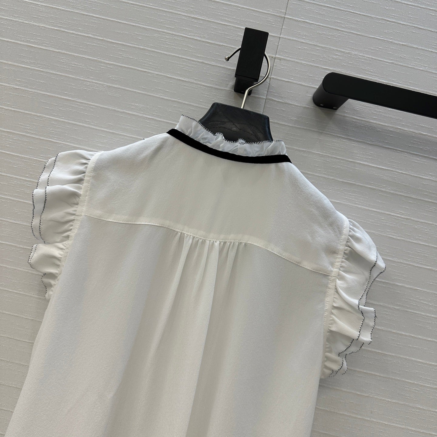CD 25 Flying Sleeve Short Shirt White Cotton