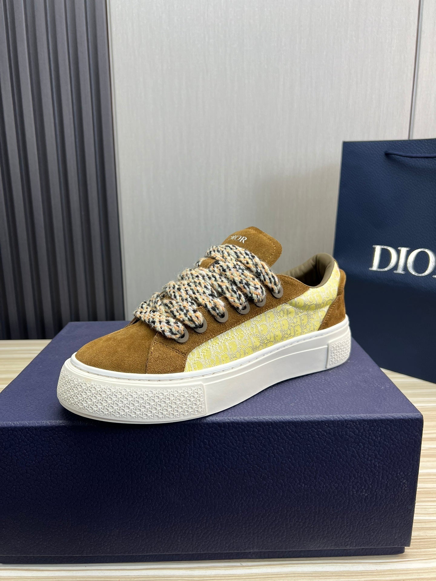 CD B33 SNEAKER BROWN AND PASTEL YELLOW SUEDE