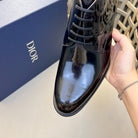 CD HOMME LACE-UP ANKLE BOOT GLOSSY BLACK CALFSKIN