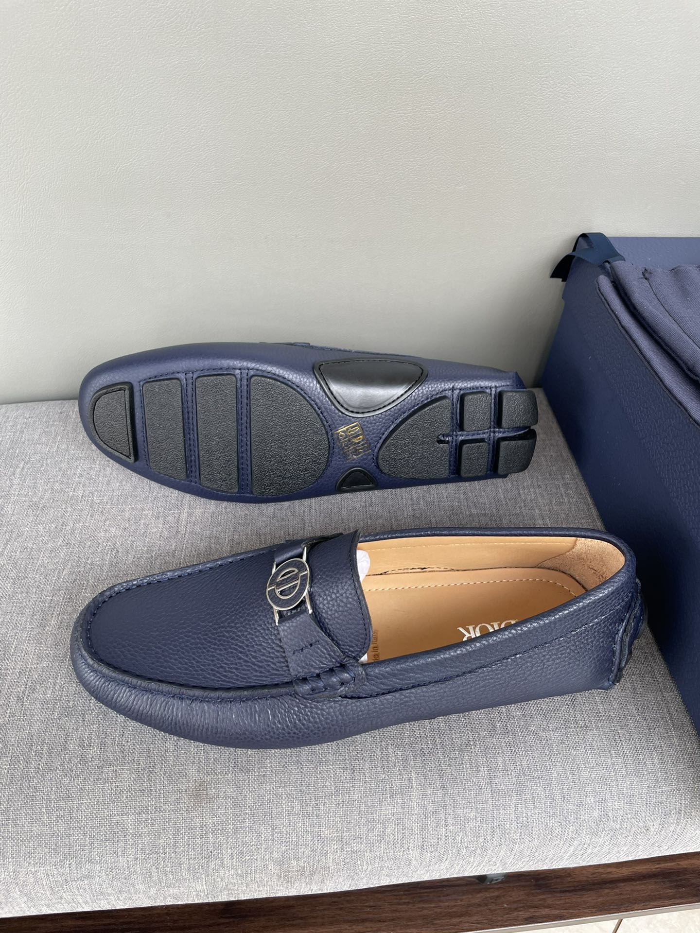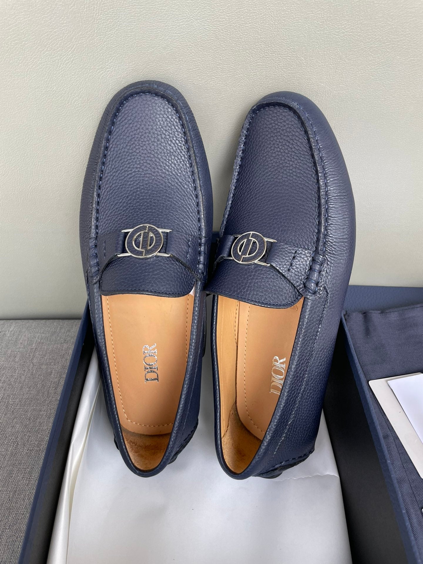 CD JUAL ICON BUCKLE LOAFER NAVY GRAINED CALFSKIN