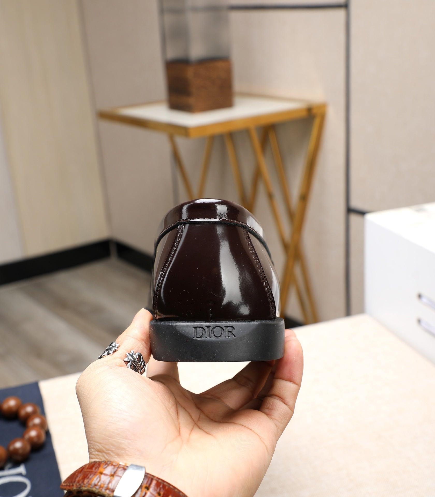 CD RETRO SEWED LOAFER WINE POLISHED CALFSKIN