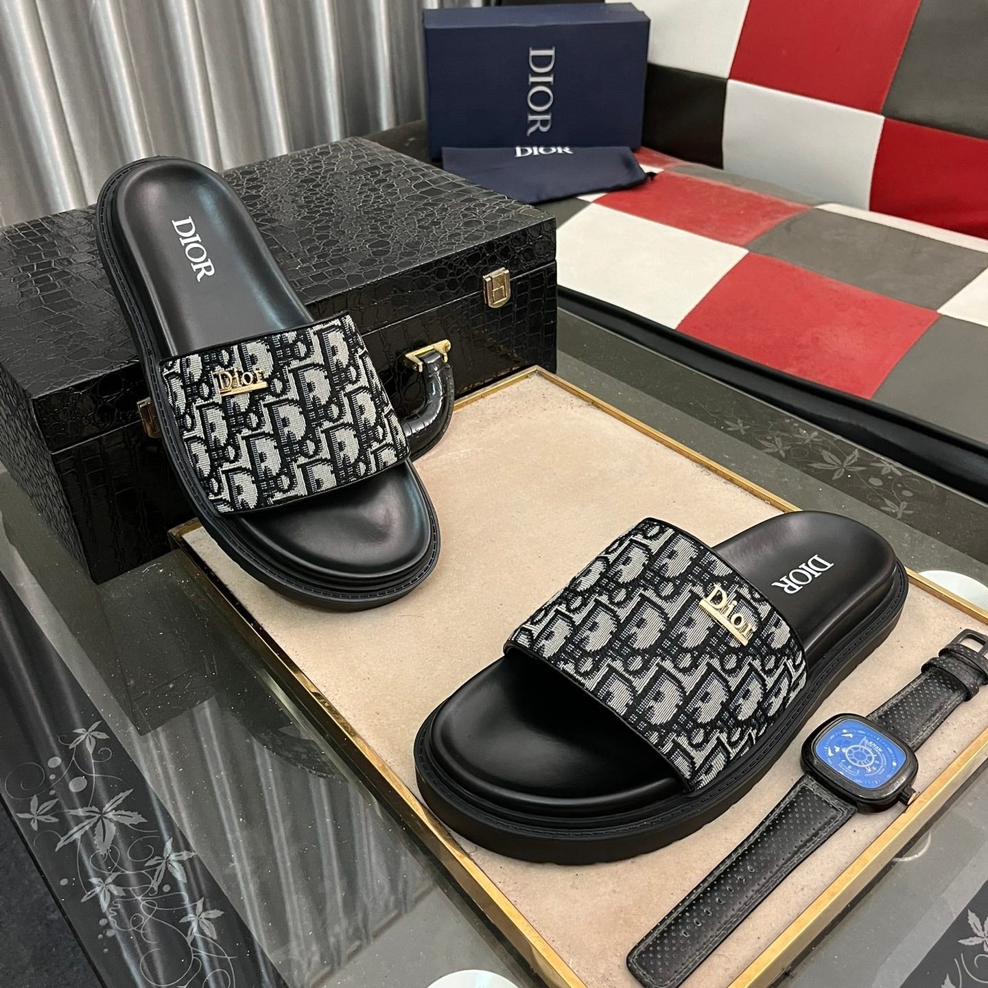 CD AQUA SLIDE SANDAL BLACK MONOGRAM CALFSKIN