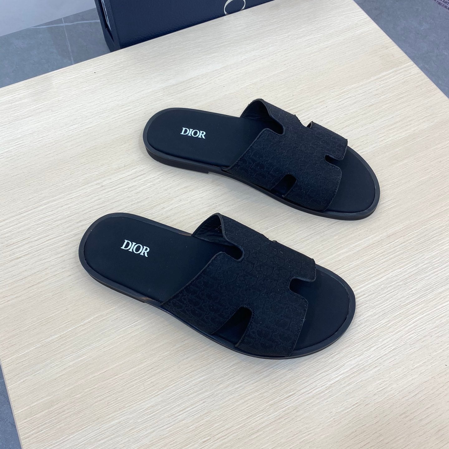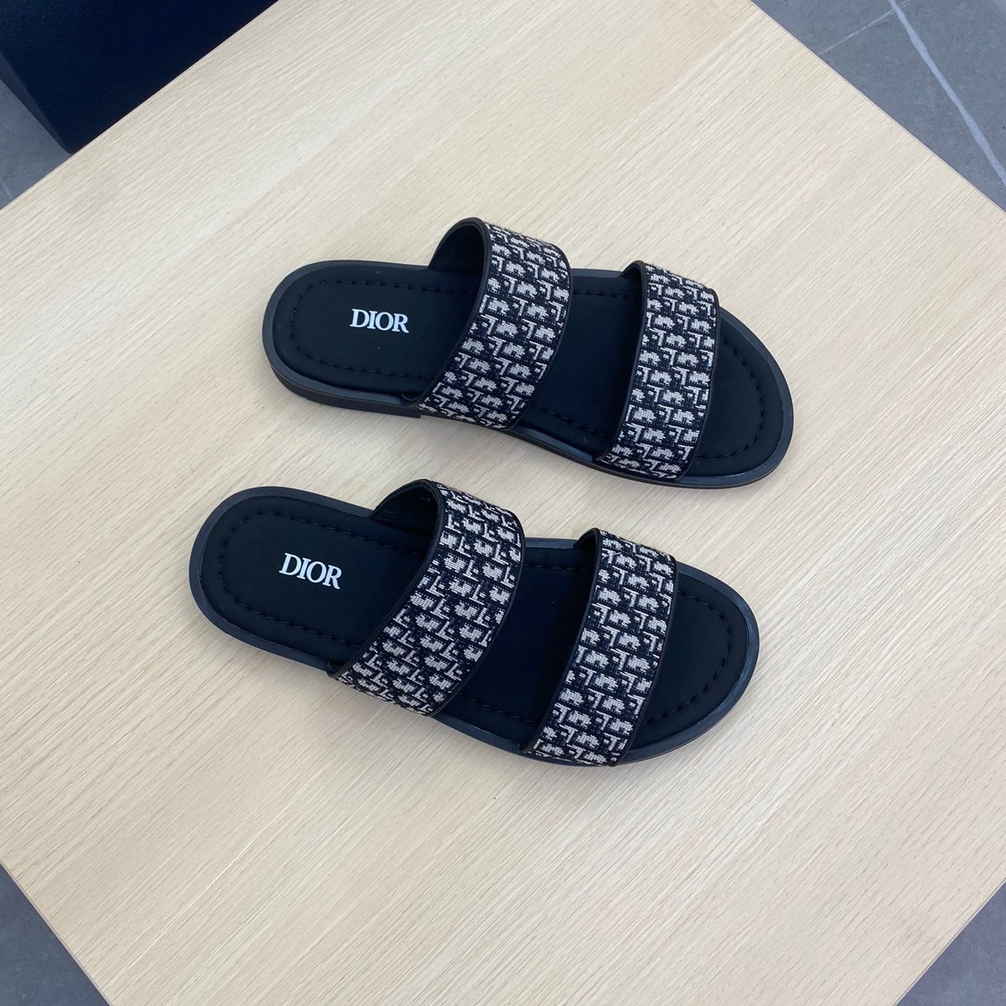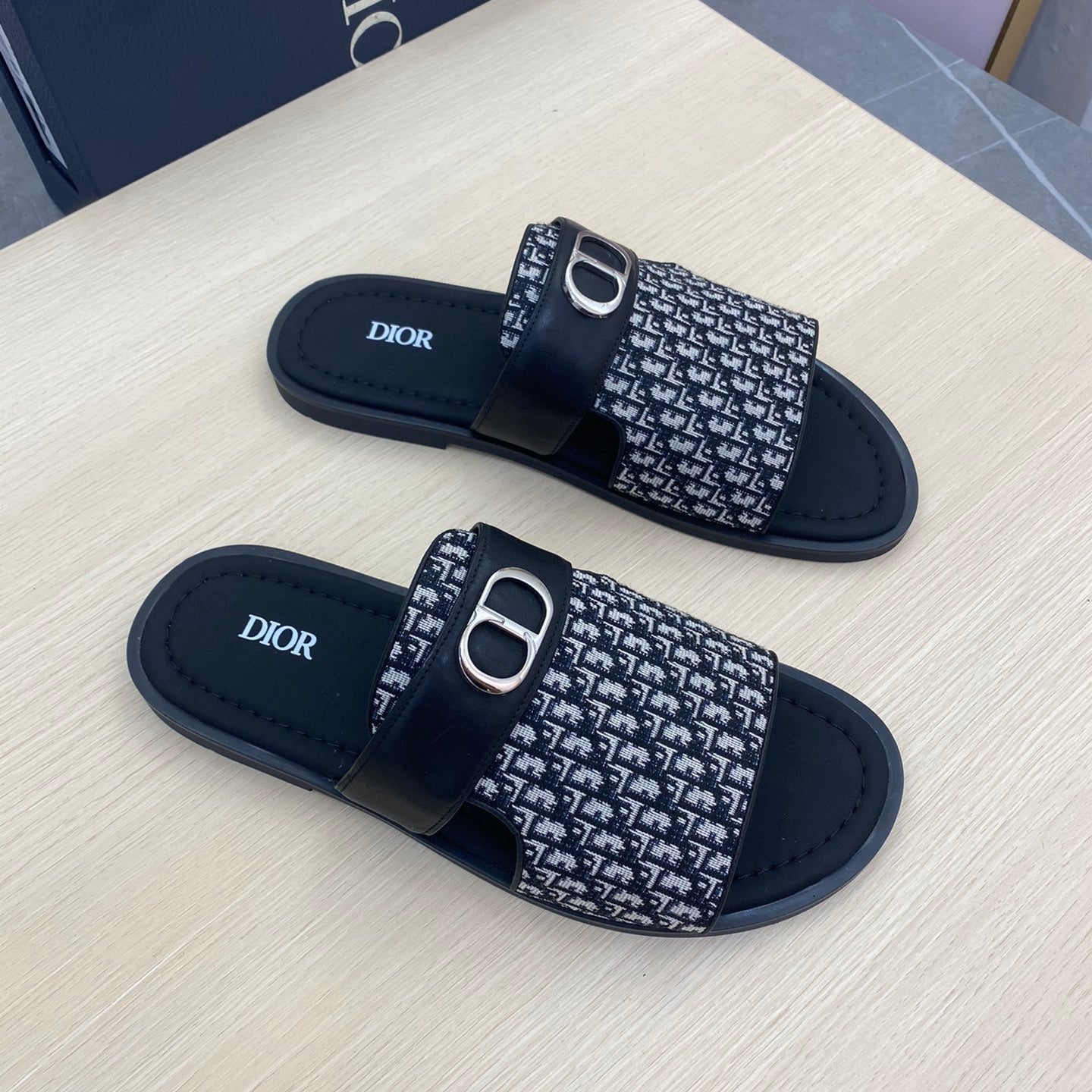 CD DOUBLE STRAP SLIPPER BLACK MONOGRAM CALFSKIN