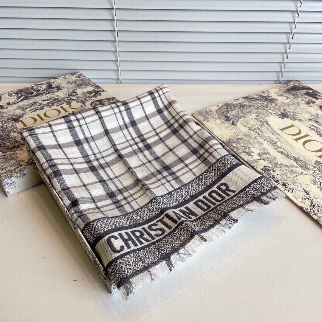 MISS DIOR ALLOVER SHAWL 140 CM IN BLACK MIX WHITE SILK CASHMERE 411629