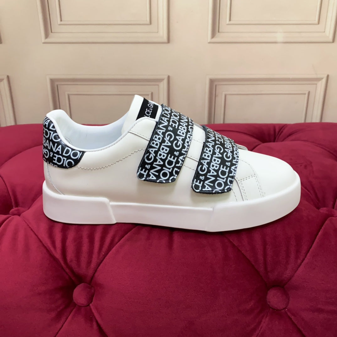 DC 24 Hook-Loop Portofino Sneakers Black White Cowhide & Sheepskin 100860