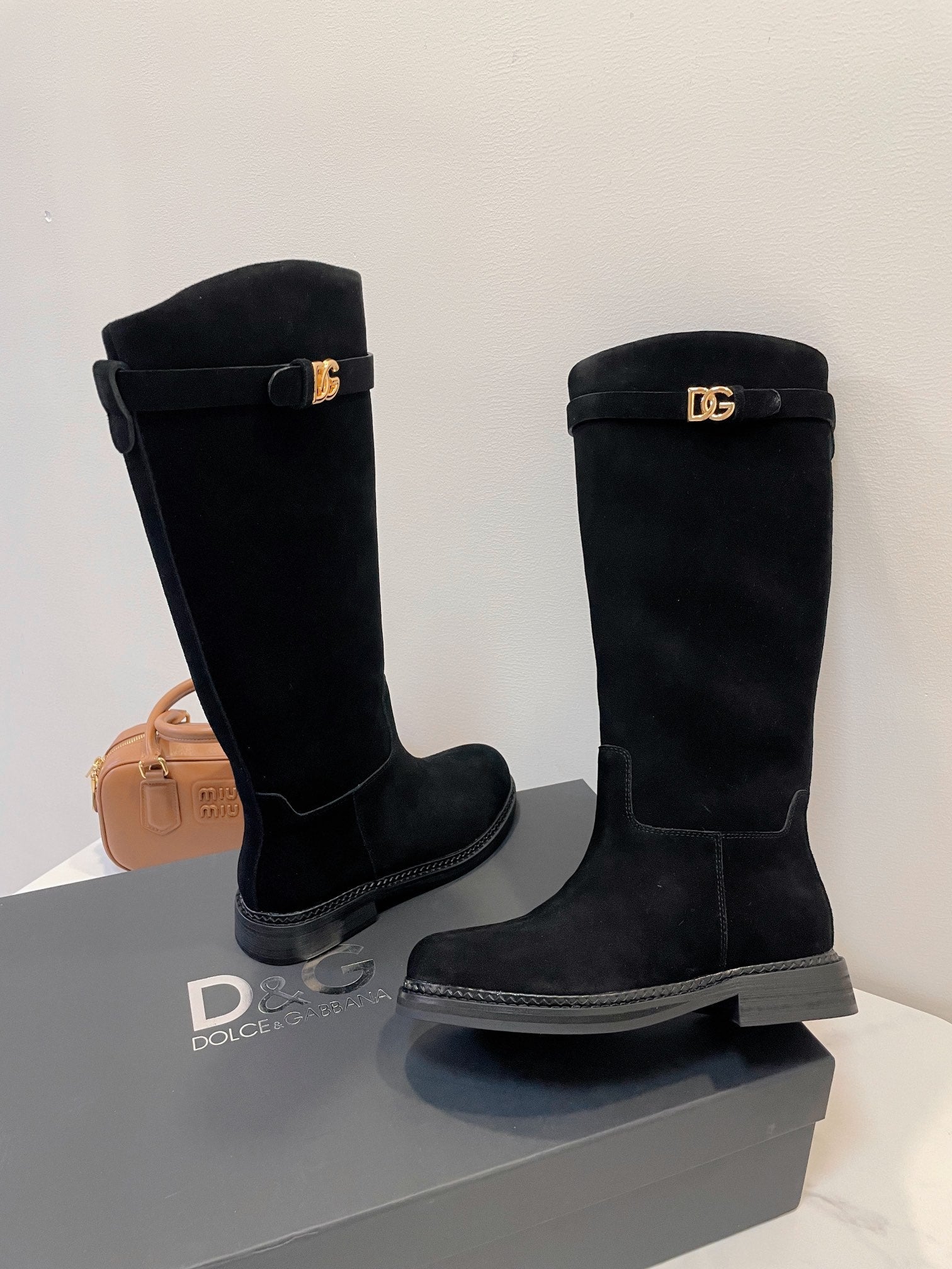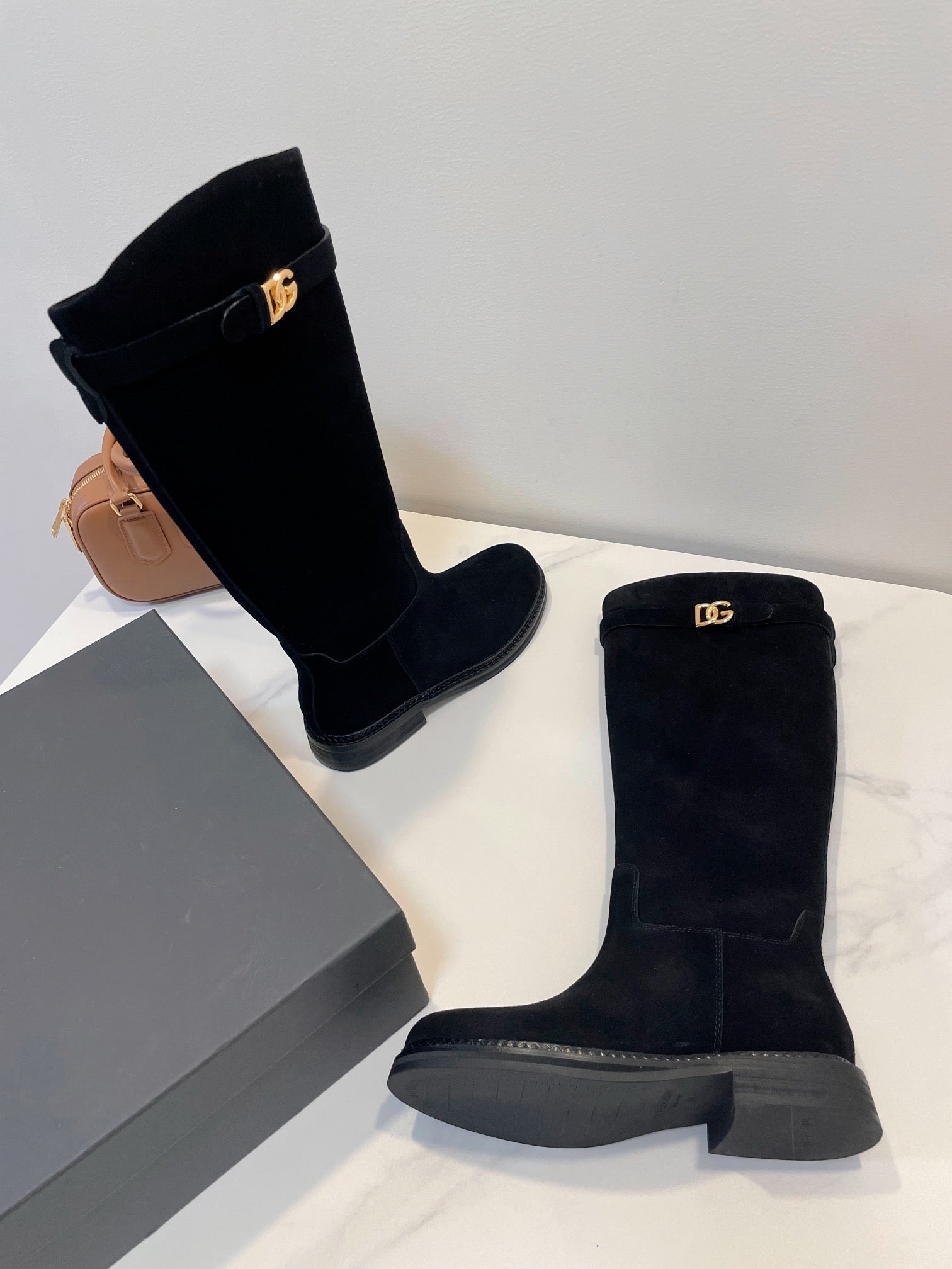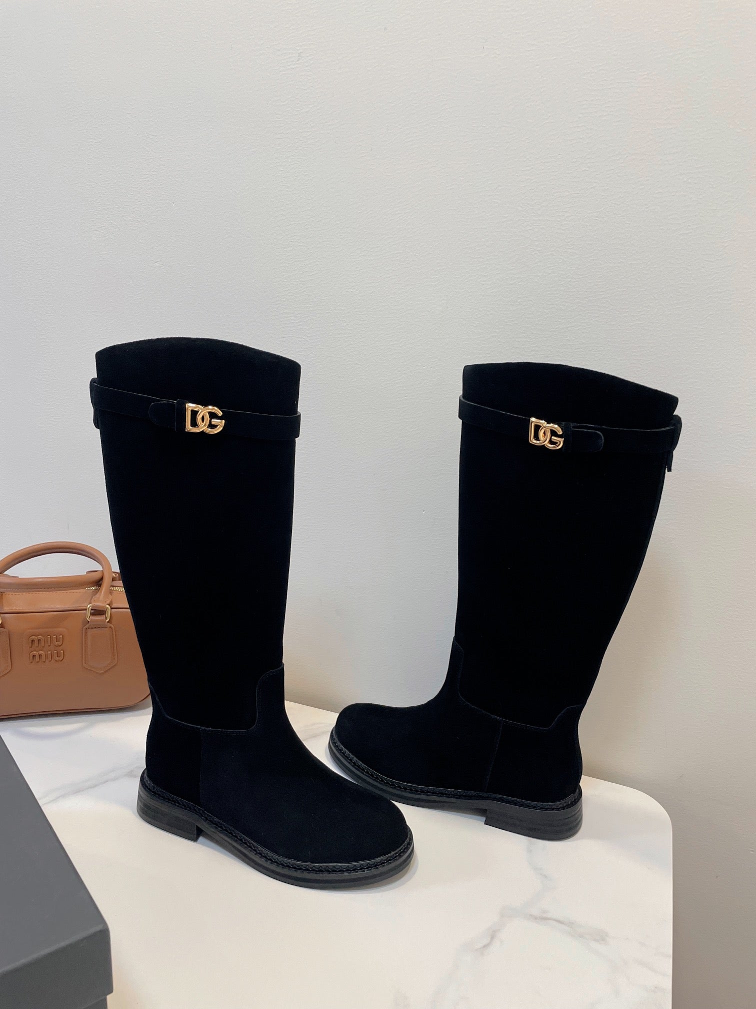 DC 24 Knee-High Boots Black Suede & Nubuck 999236
