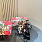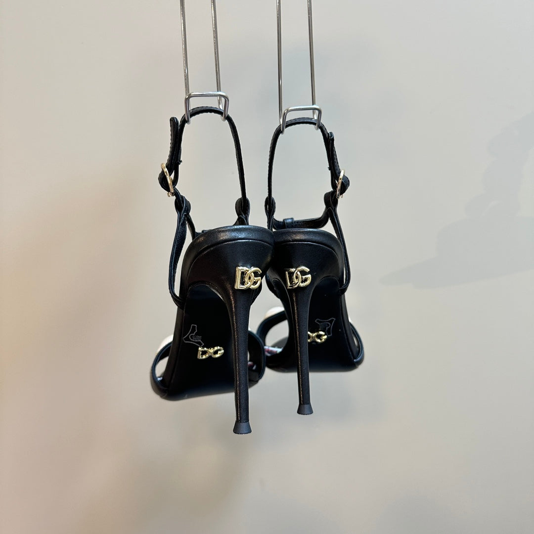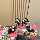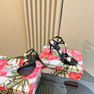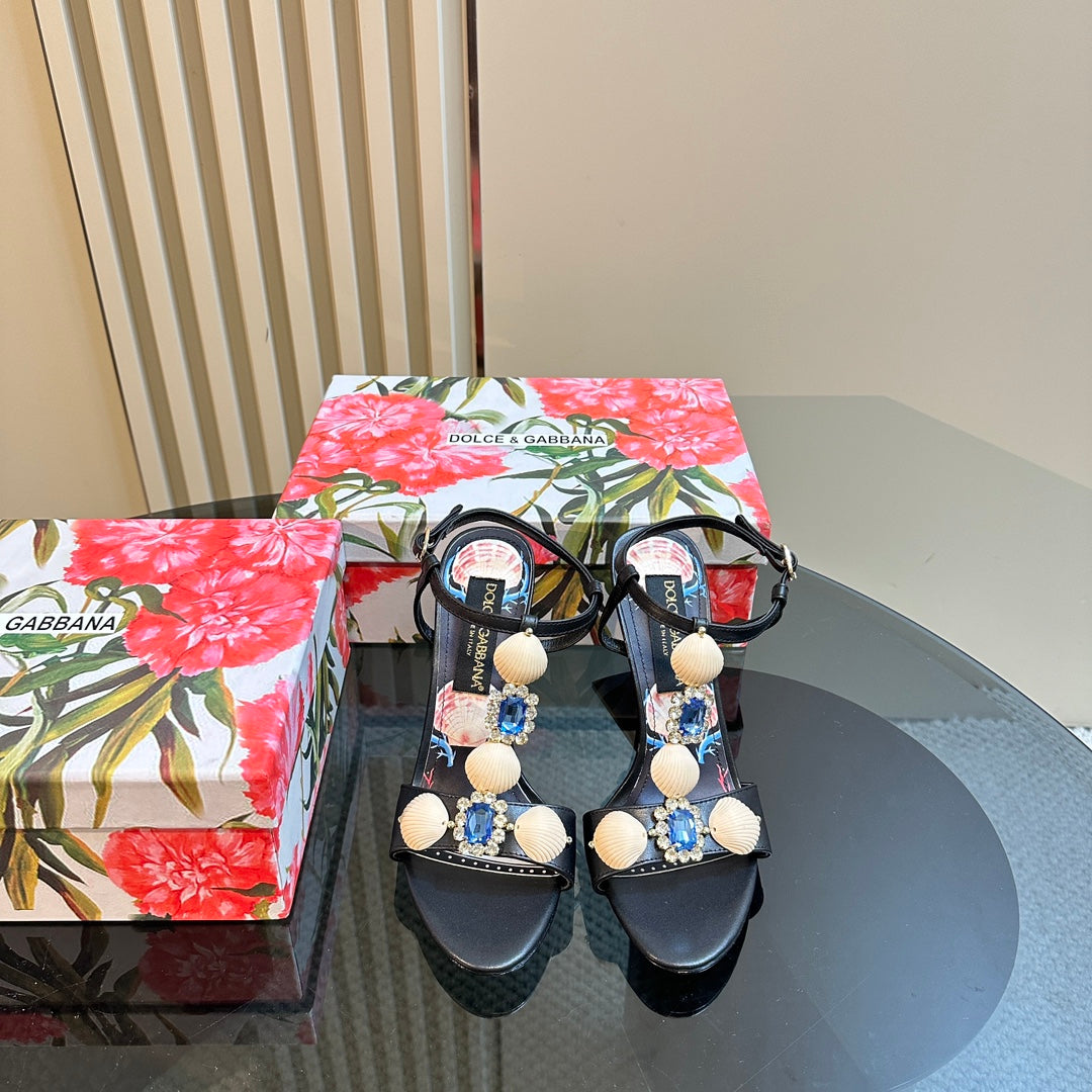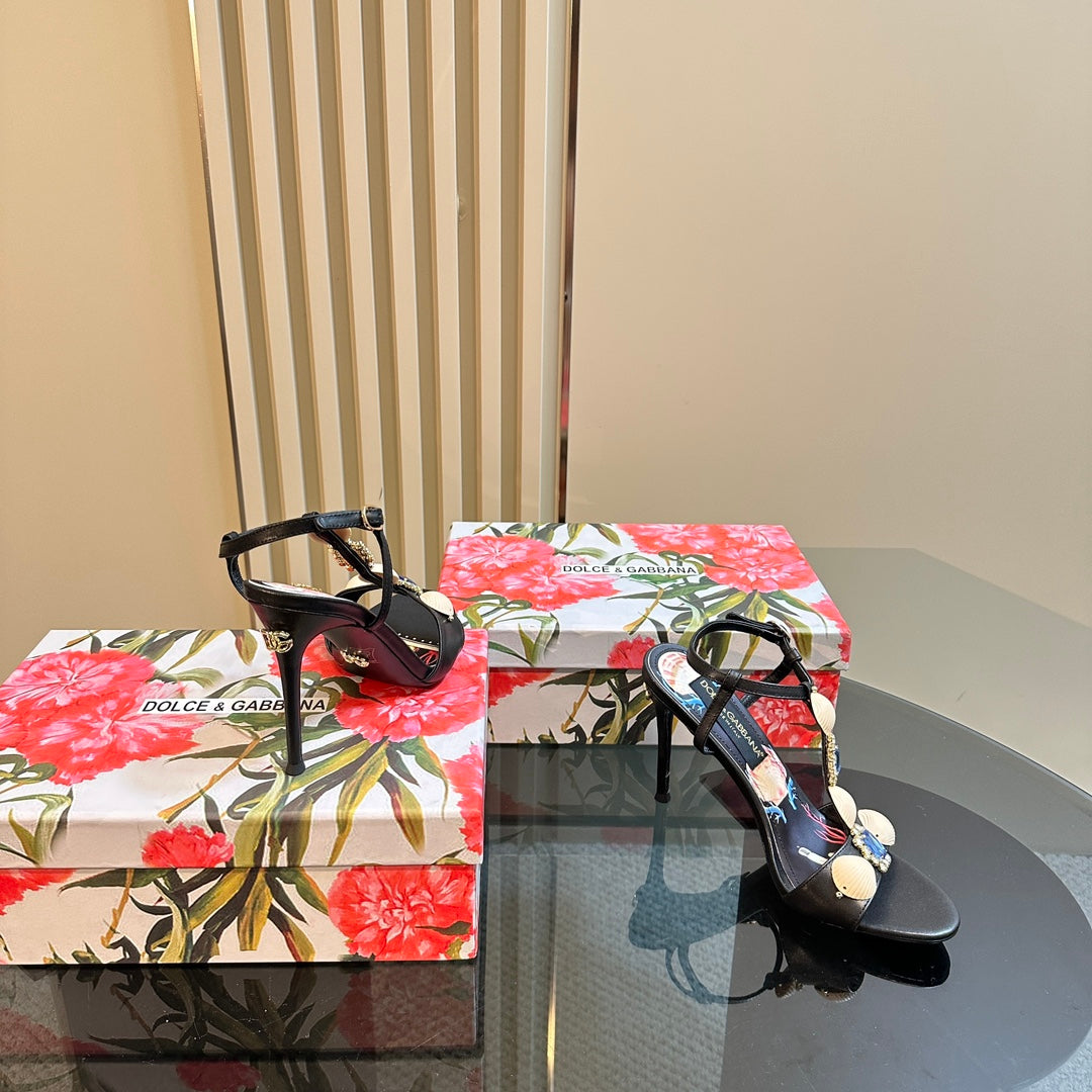DC 24 Shell Rhinestone High Heel Sandals Black Cowhide & Sheepskin 946163