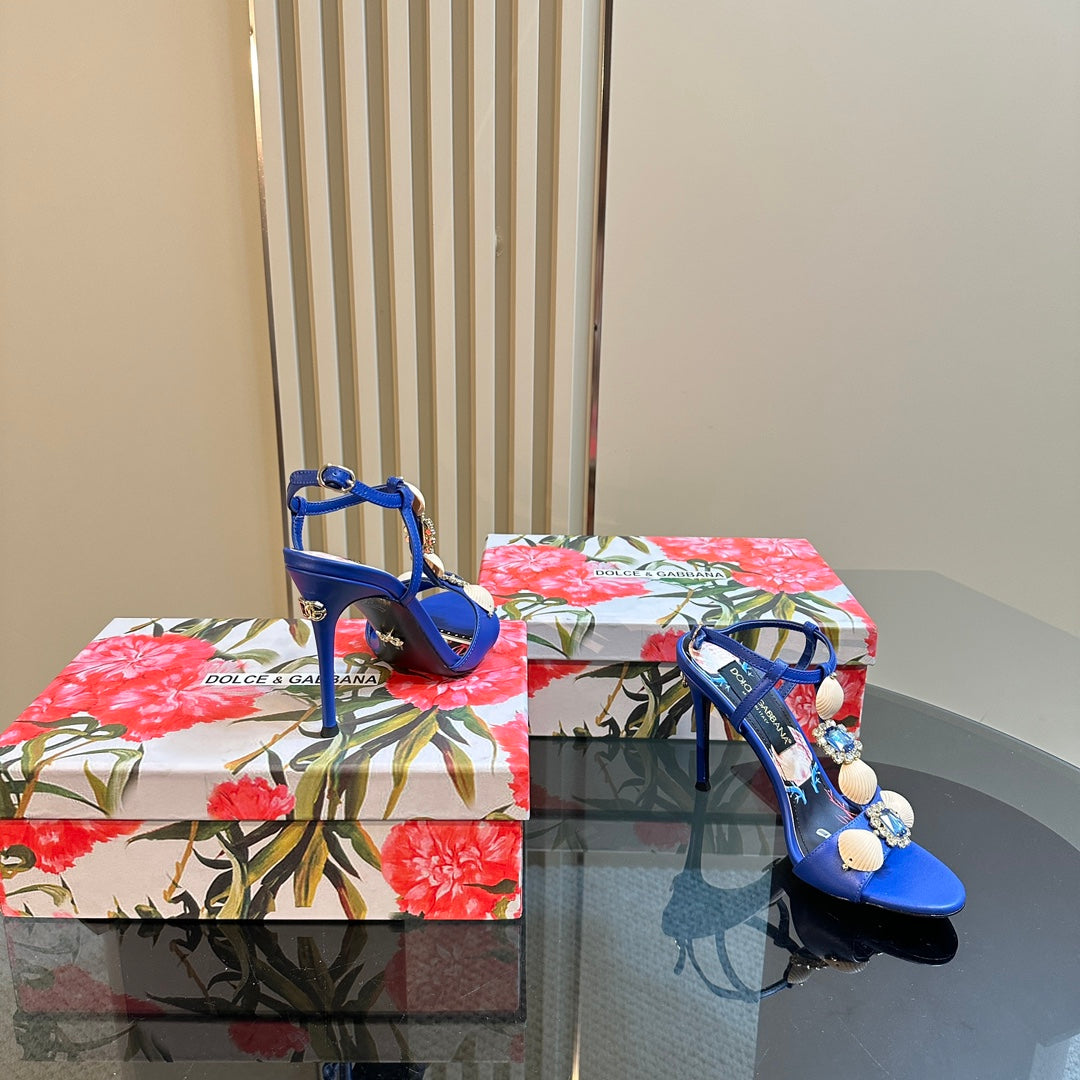 DC 24 Shell Rhinestone High Heel Sandals Blue Cowhide & Sheepskin 946159