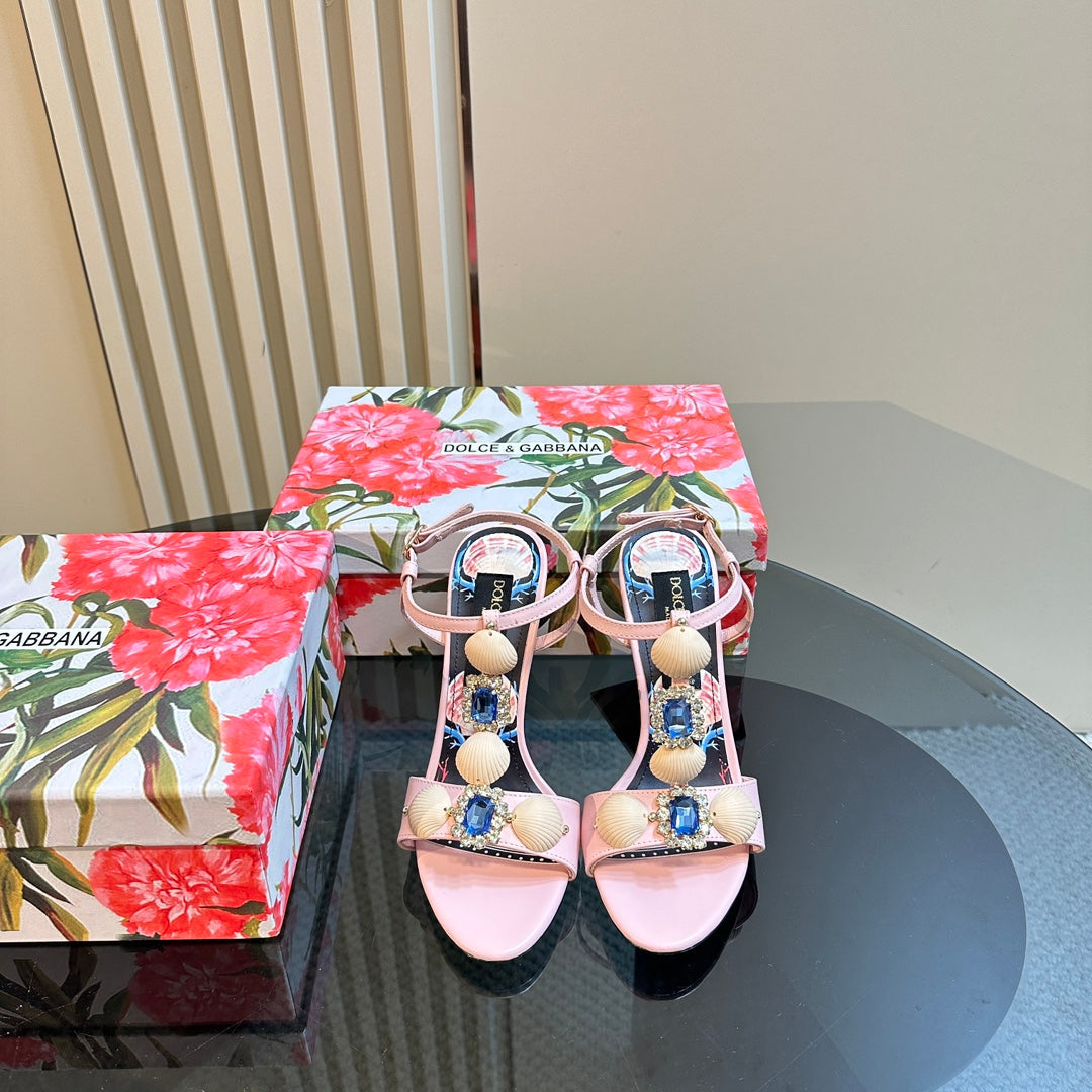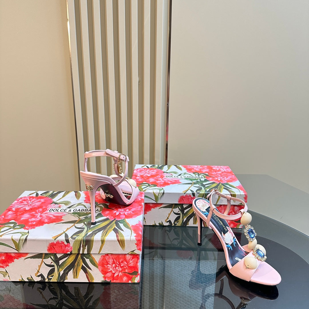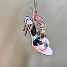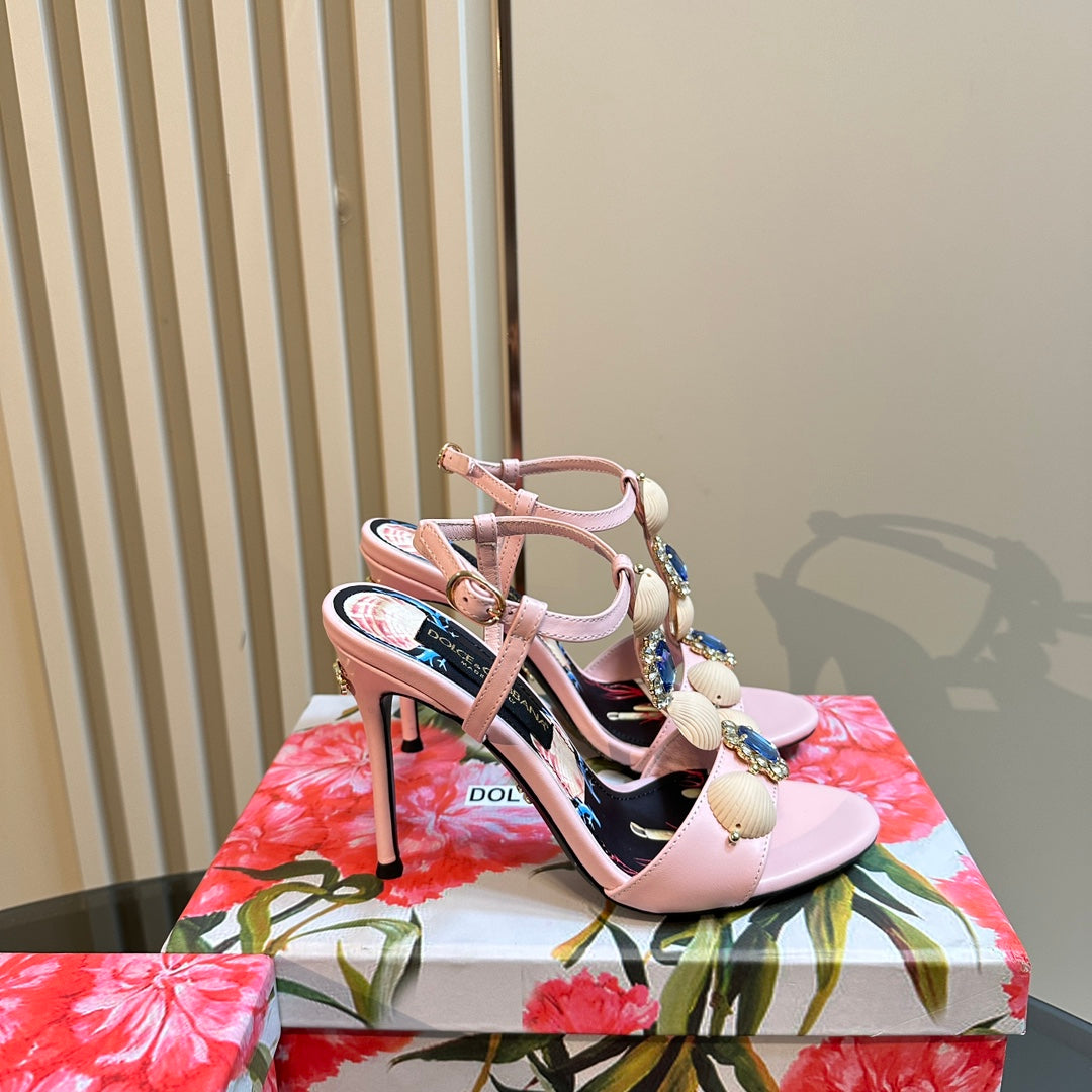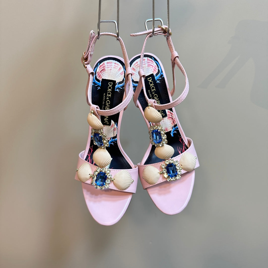 DC 24 Shell Rhinestone High Heel Sandals Pink Cowhide & Sheepskin 946157