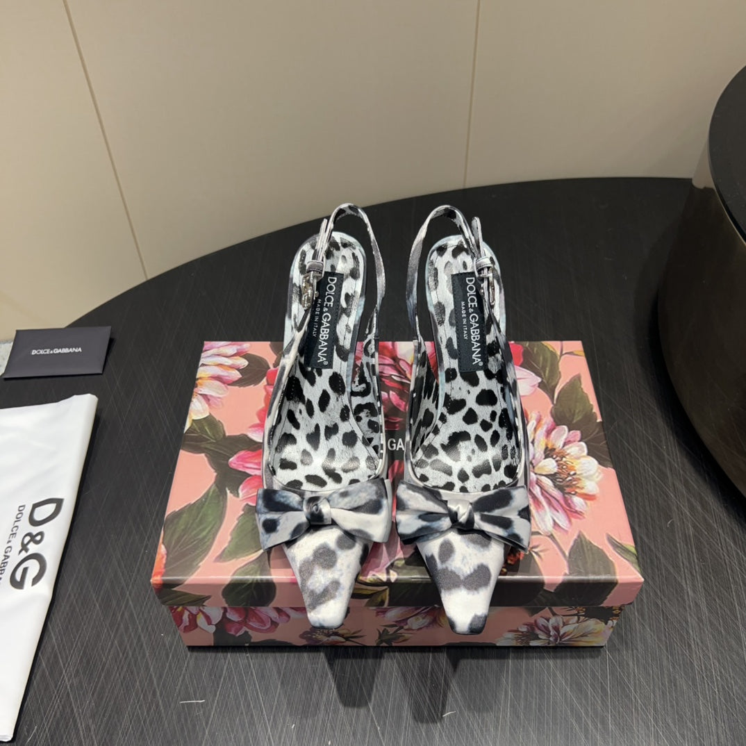 DC 25 Bow Slingback Pumps 100mm Leopard-Print Satin And Sheepskin 381615