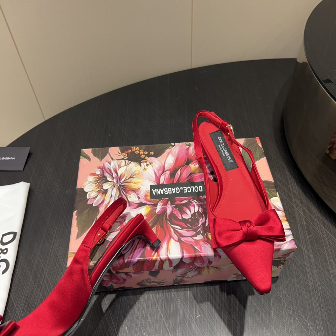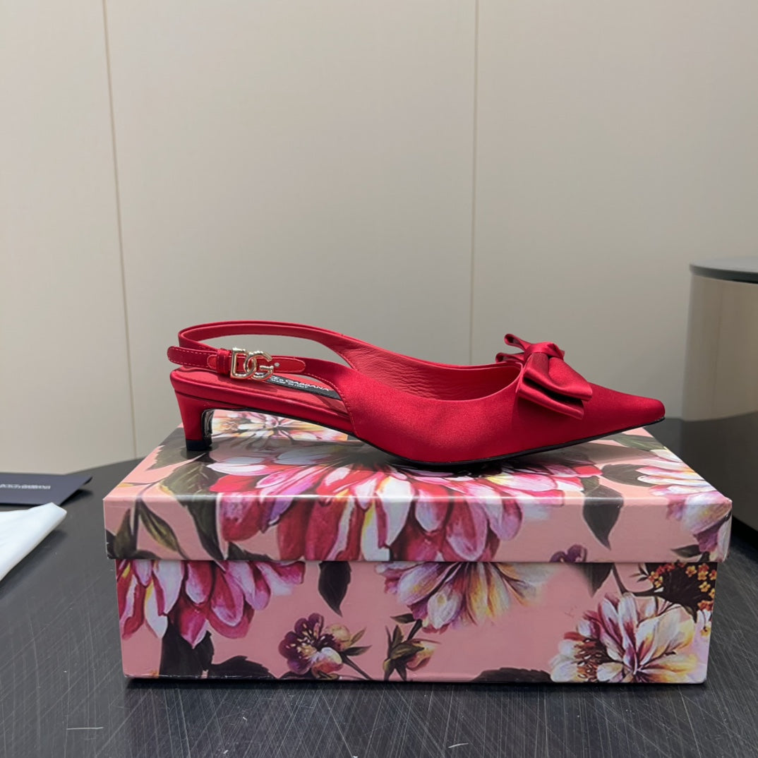 DC 25 Bow Slingback Pumps Red Silk And Sheepskin 381617