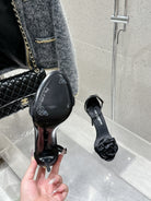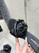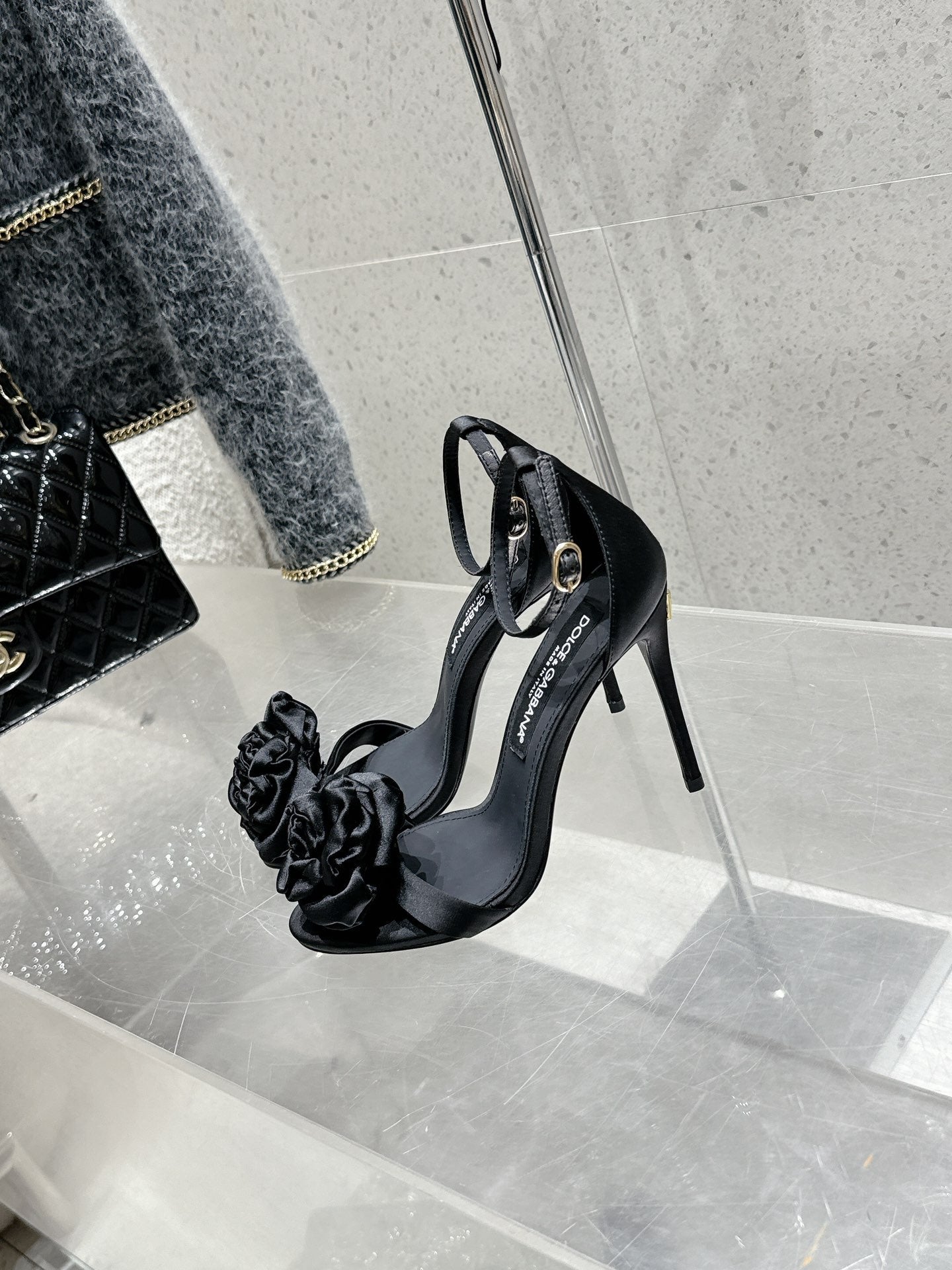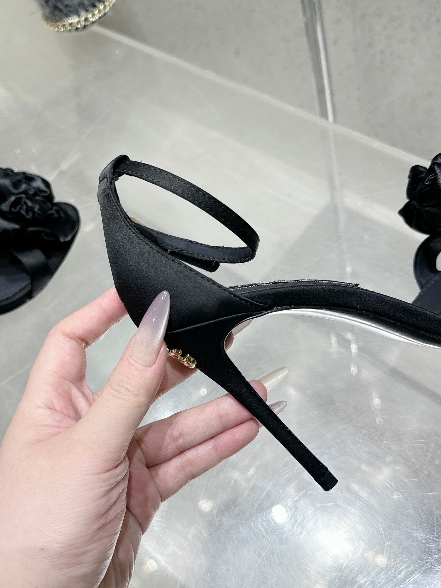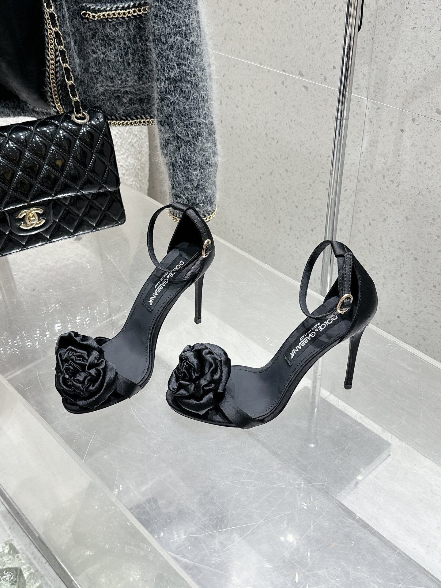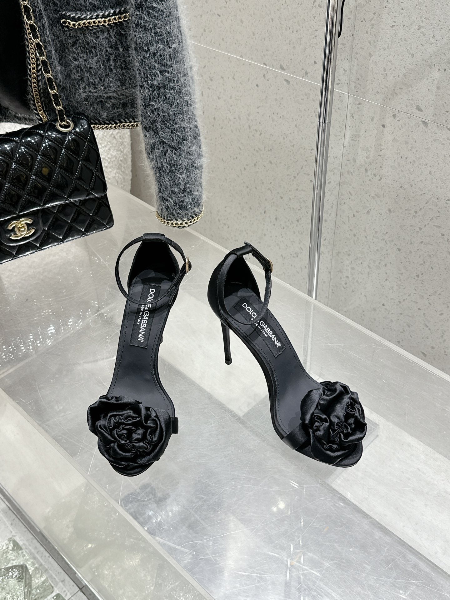 DC Flower High Heel Sandals 105mm Black Satin & Sheepskin 359507