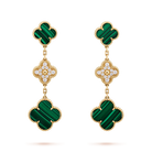 CLOVER EARRINGS GOLD MALACHITE DIAMOND 3 MOTIF