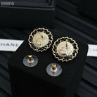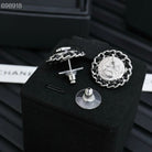 CC 25P STUD EARRINGS IN BLUE DENIM BLACK CALFSKIN-THREADED BUTTON