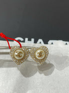 cc heart diamond paved mop stud earrings